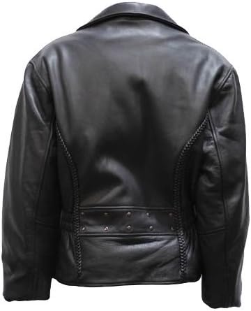 Womens leather motorcycle jackets, braided with gathered sides and insulated zip out lining. Womens braided motorcycle jackets are made from top grade heavy duty soft leather. Jackets feature a zip out lining that runs through the sleeves. Jacket includes neck warmer for those cooler days..Jacket is also braided on front and back, has multiple pockets and zippered cuffs – For Jackets best fit, order by chest size.