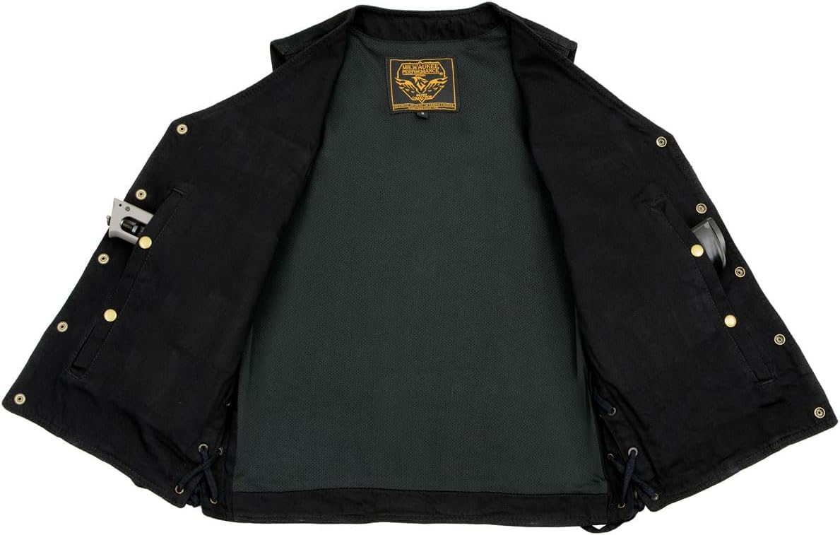 Milwaukee Leather DM1360 Men’s Black Denim Motorcycle Biker Riders Vest with Adjustable Side Laces – Small