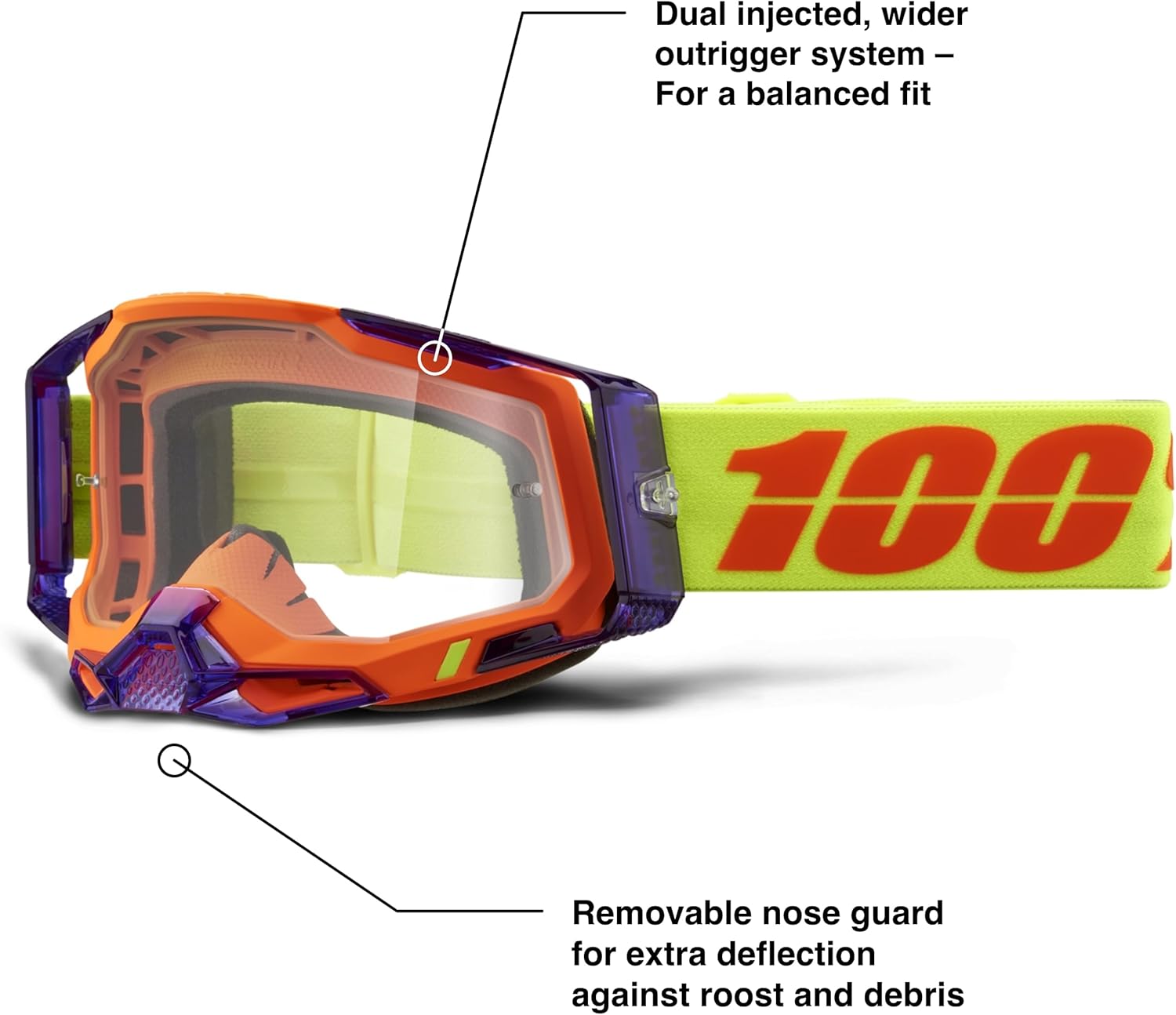 100% Racecraft 2 Mountain Bike & Motocross Goggles – MX and MTB Racing Protective Eyewear (Panam – Clear Lens)