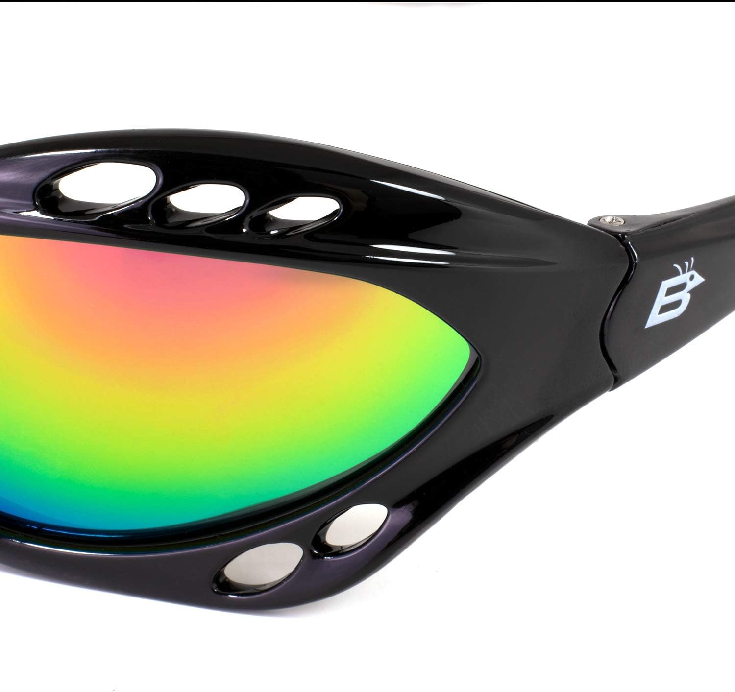 Birdz Eyewear Seahawk Water Sports Safety Goggles Jetski Kayaking Jet Ski Watersports Black Frames + Pink ReflecTech Mirror Lenses