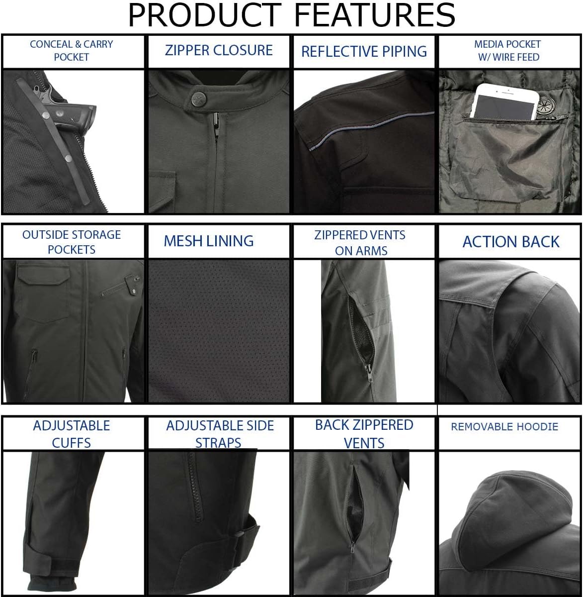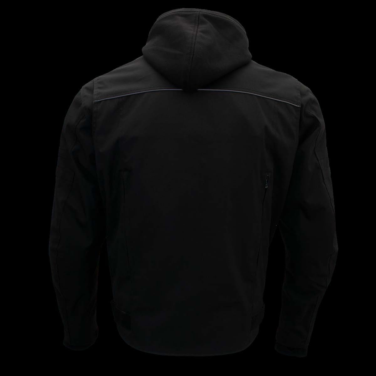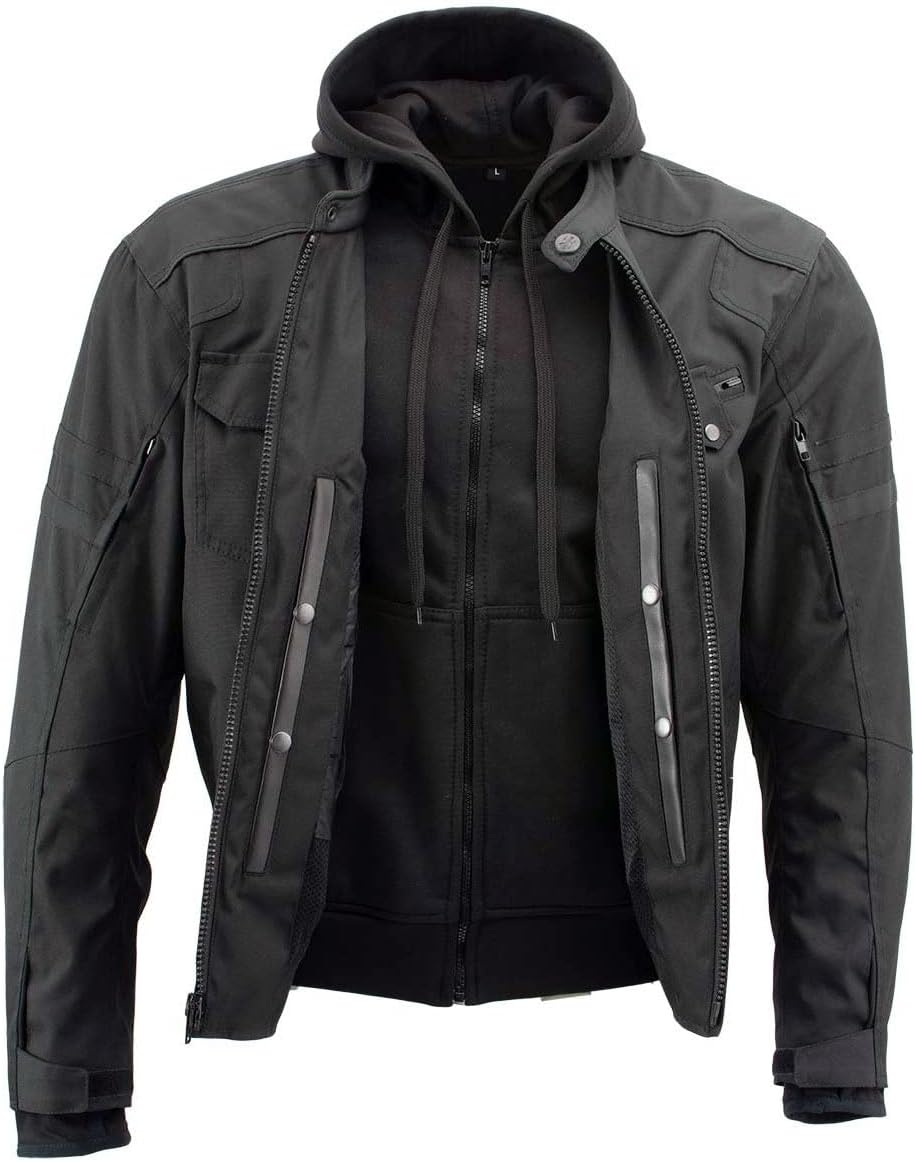 Xelement B91022 Men’s ‘Flight’ Black Textile Jacket with X-Armor and Removable Hoodie