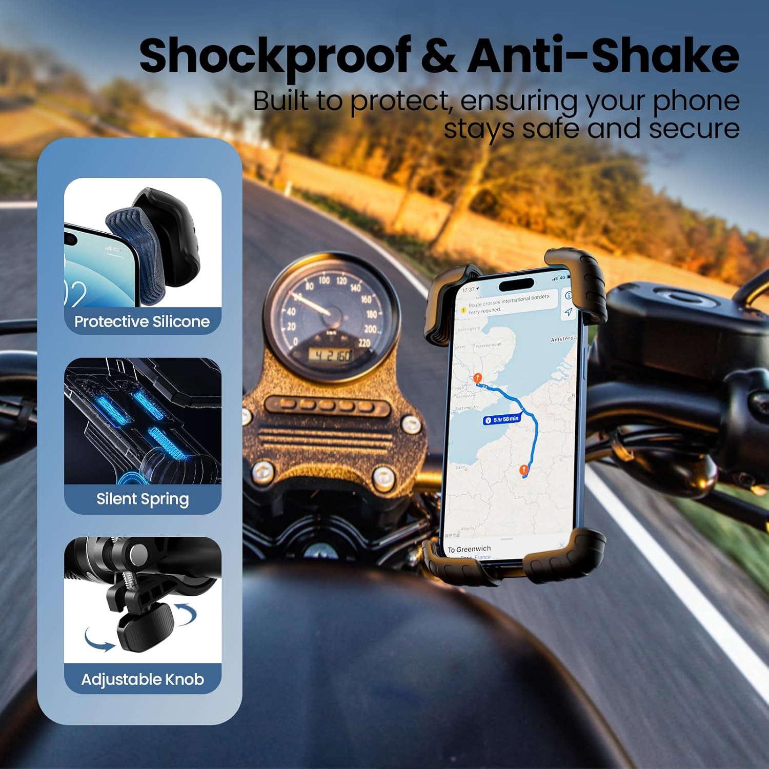 𝑷𝑹𝑬𝑪𝑰𝑺𝑰𝑶𝑵 𝑺𝑰𝑳𝑬𝑵𝑻 𝑫𝑬𝑺𝑰𝑮𝑵: Our bike phone holder features a thickened base silicone pad and precision silent spring, providing multiple noise reduction treatments. Enjoy a quiet, rattle-free ride with this premium motorcycle phone mount.
