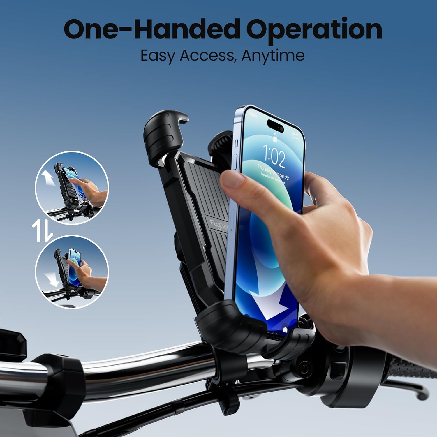 𝑨𝑳𝑳-𝑾𝑬𝑨𝑻𝑯𝑬𝑹 𝑫𝑼𝑹𝑨𝑩𝑰𝑳𝑰𝑻𝒀: Made of PC+alloy, our phone mount is sun/rain-resistant and can withstand extreme temperatures (-20°~80°), ensuring long-lasting performance in any weather condition. A reliable phone holder for bike handlebar.