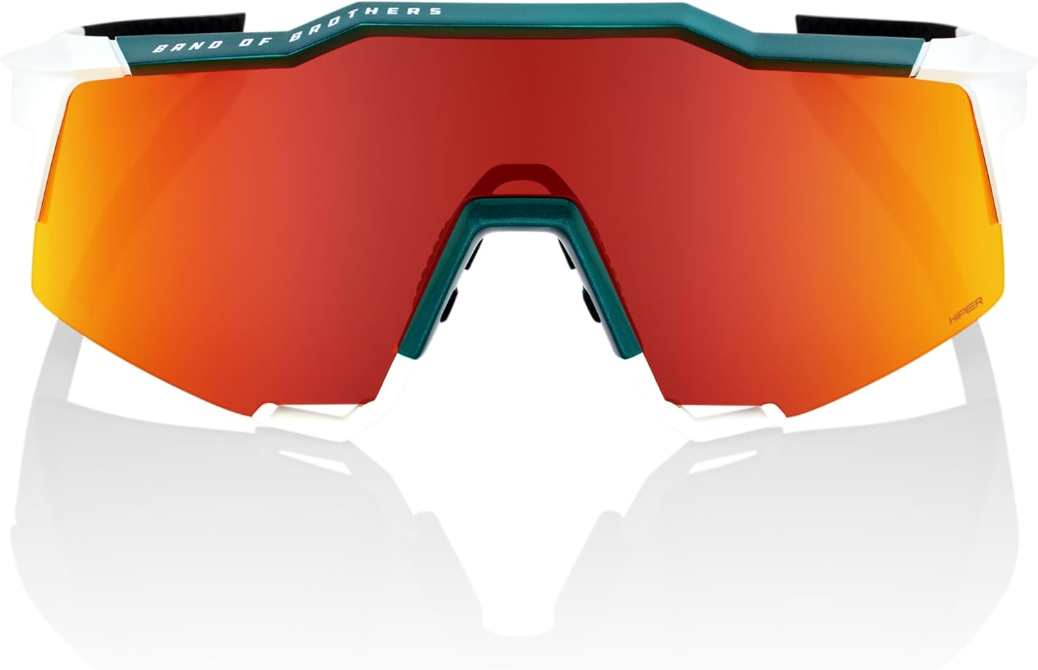 100% SPEEDCRAFT Sport Performance Cycling Sunglasses (Gloss Metallic Bora/Matte White – Mirror Red Multilayer Lens)