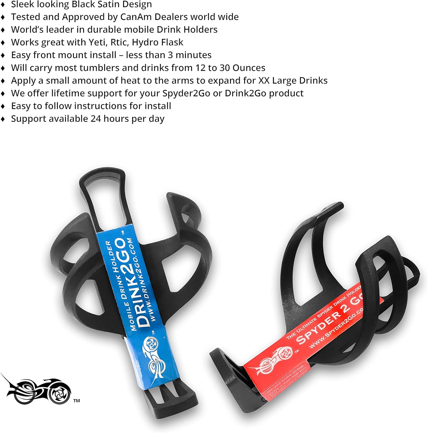 Be the first to review “2 Cup Holders for Can-Am Spyder – 1 Spyder2Go Handlebar Mount & 1 Clamp Style Rear Handgrip Spyder Motorcycle Drink Holder – Flexes to Fit Cup Sizes – Anti Slip Grip – Best Can Am Spyder Accessories”