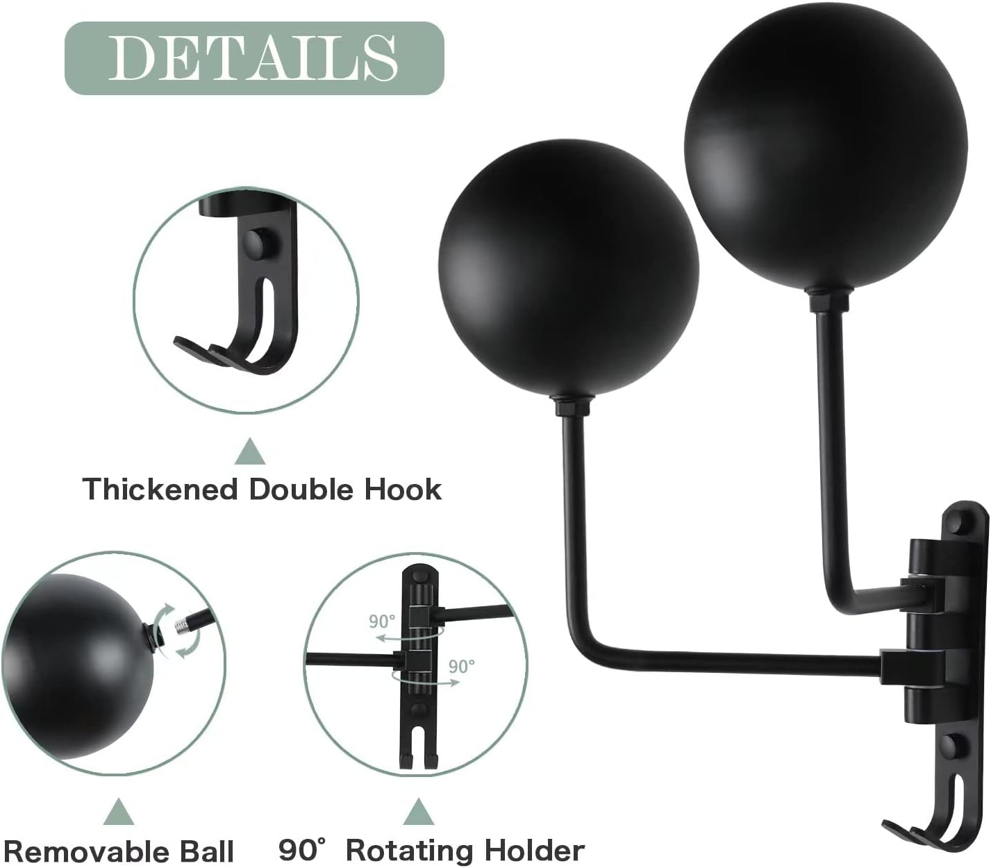 Double Support Ball Design: Innovative 2 in 1 helmet holder design, The Double Support Ball can be used for place two helmet, neatly store your helmet. The lower part is also equipped with a thickened double hook, create extra storage space for hanging coats, sportswear, backpacks, handbags, keys, wigs, etc. on the hook