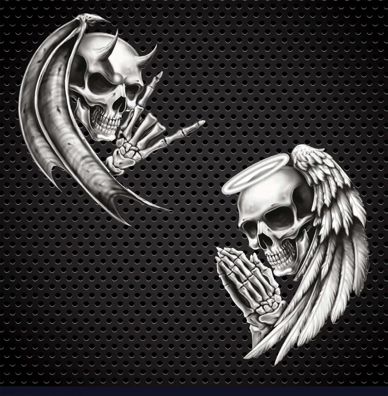 2 Pack Devil Death Skull Angel Life Skull Bumper Vinyl Sticker for Car, Truck, Motorcycle, Helmet| 4.5 Inch Each | AG-682