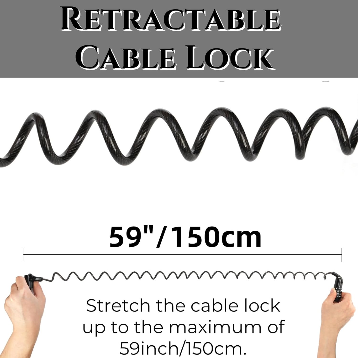 Retractable Lock: Our lightweight bicycle locking chain can extend up to a maximum length of 59 inches, providing flexible usage. When taking a break, simply secure the cable lock and helmet by conveniently wrapping them around your motorcycle or bicycle. Reinforced steel cables contribute to the exceptional security provided by this lock.