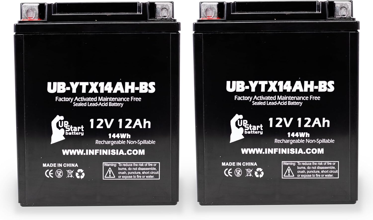 2-Pack UB-YTX14AH-BS Battery Replacement for 2009 Arctic Cat TRV 650 CC ATV – Factory Activated, Maintenance Free, Motorcycle Battery – 12V, 12AH, UpStart Battery Brand