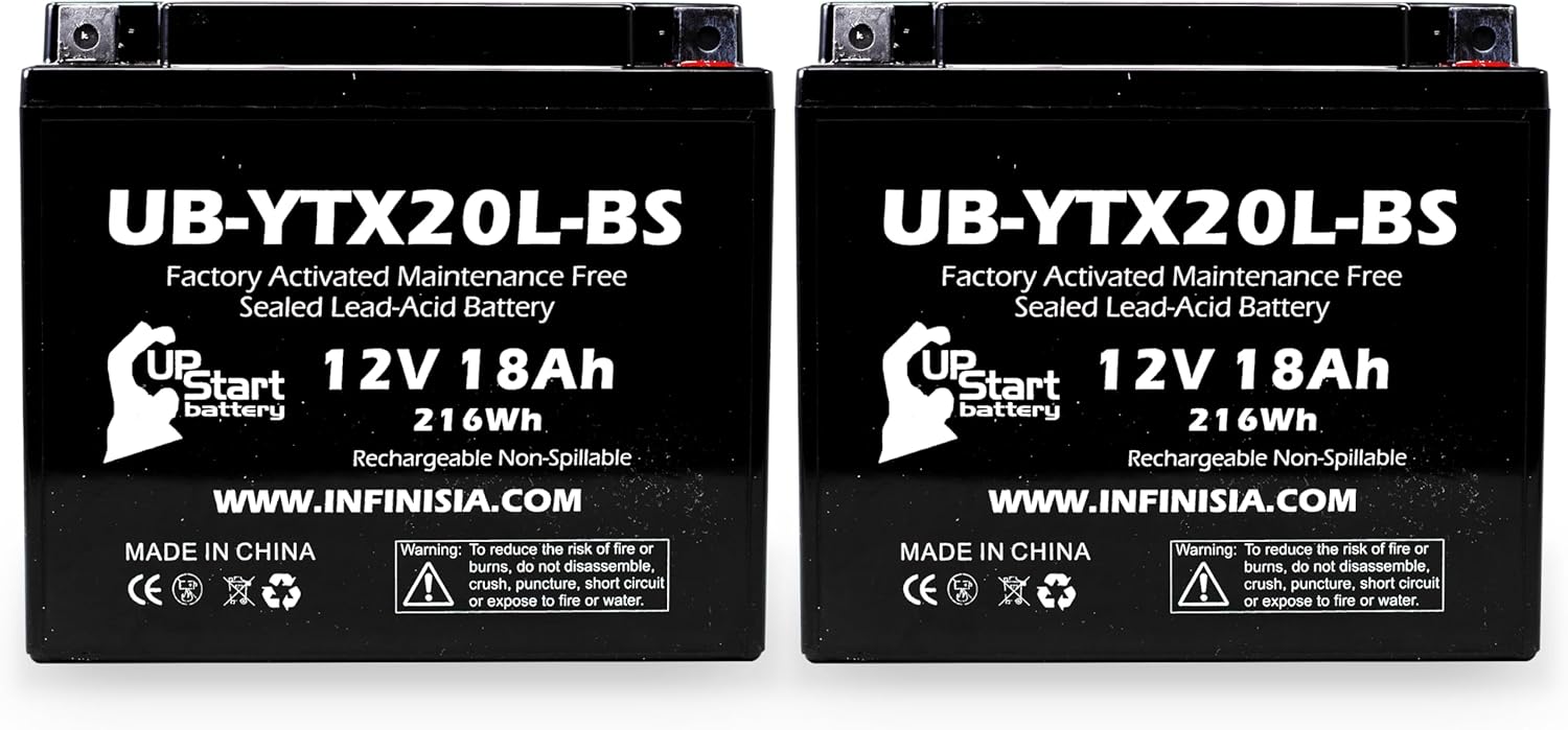 UB-YTX20L-BS Battery Replacement for 2015 BRP (Sea-Doo) SPARK 900 CC Personal Watercraft – Factory Activated, Maintenance Free, Motorcycle Battery – 12V, 18AH, UpStart Battery Brand; Quantity: 2