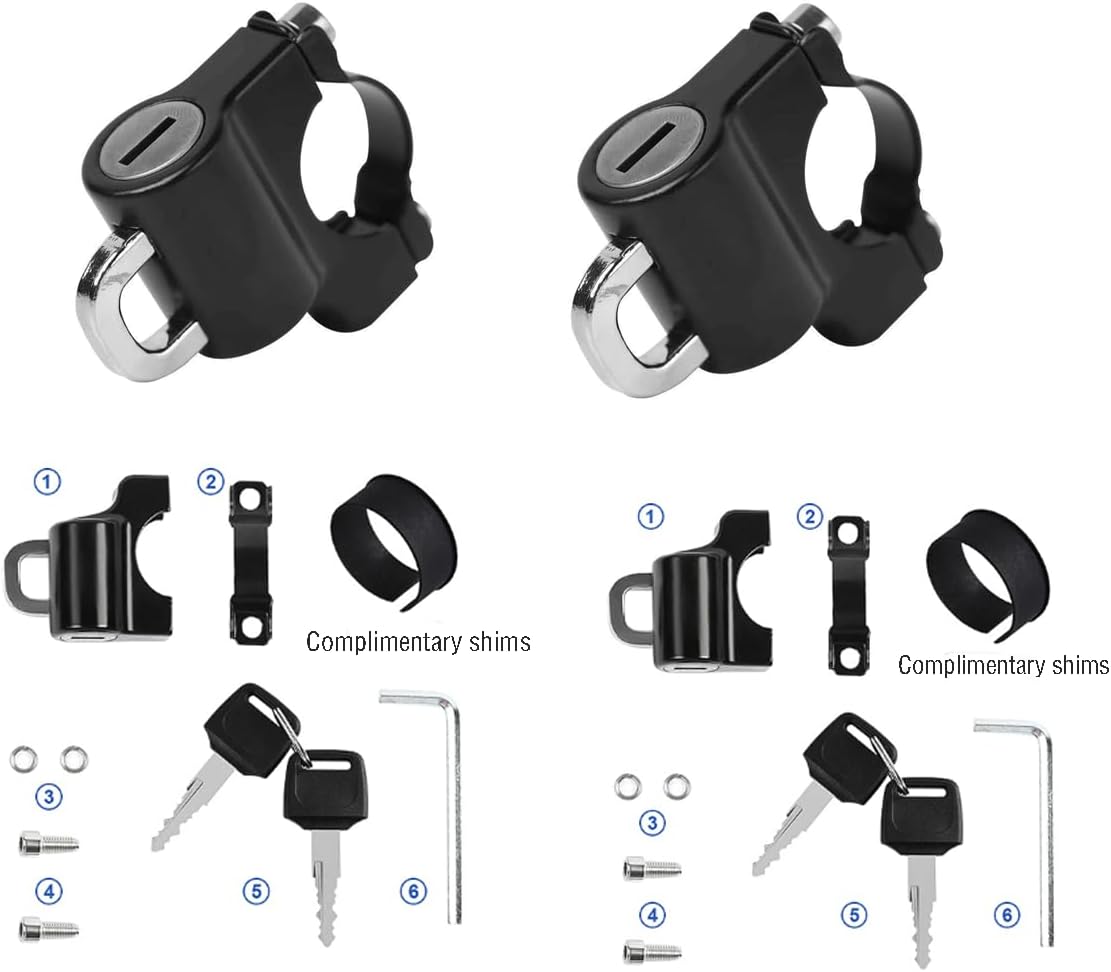 2 Pcs Motorcycle Helmet Lock,Bicycle Helmet Lock,Scooter Lock,Anti Pry Safety Lock,Waterproof and Rustproof Fixed Helmet Accessories for 22-28mm