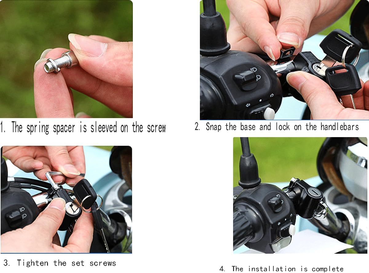 Perfect fitMotorcycle helmet lock is suitable for motorbike models with handlebars from 22mm to 28mm, with hexagonal spanner, easy and quick to install and remove.