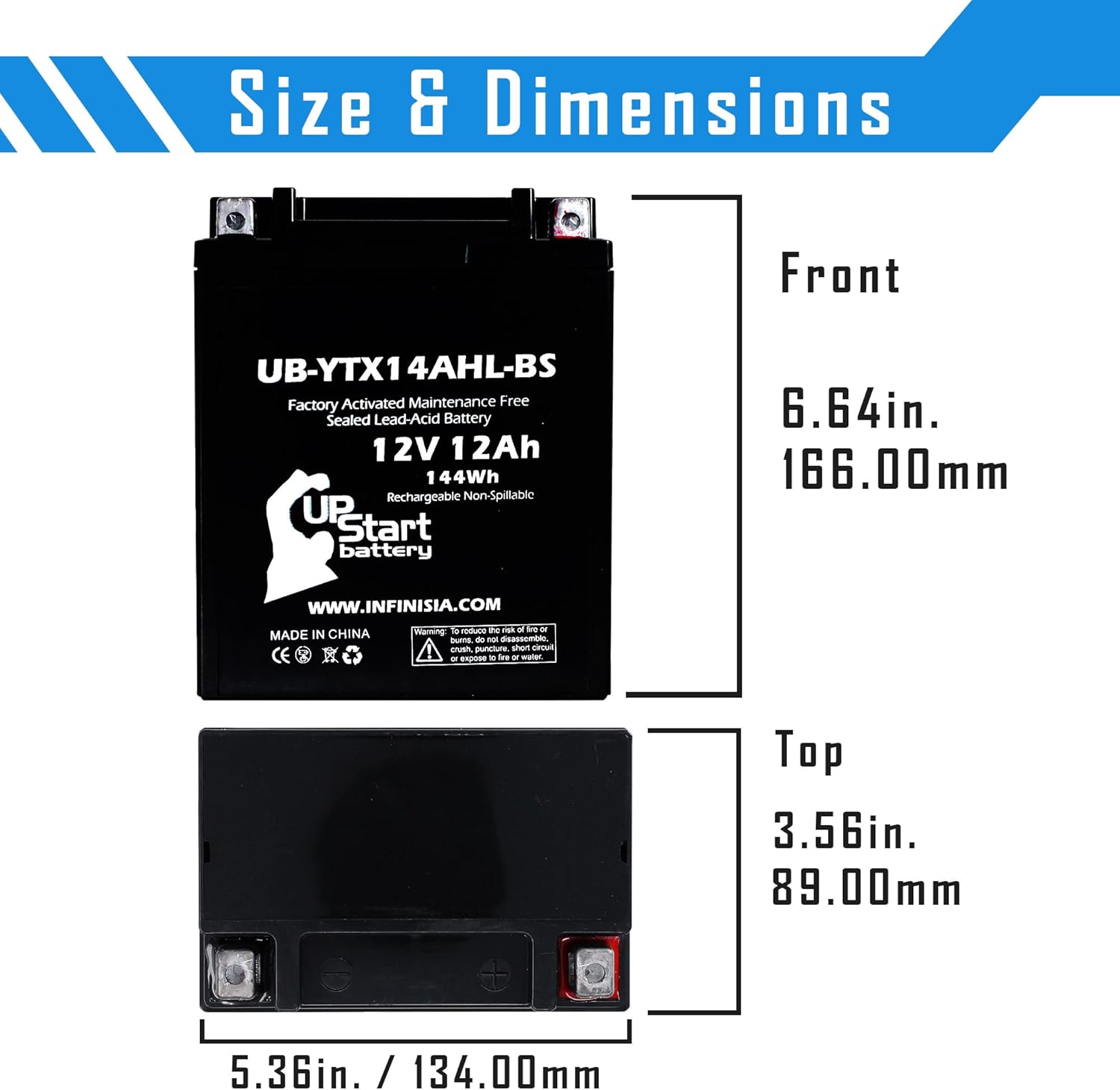 UB-YTX14AHL-BS Battery Replacement for 2006 Suzuki LS650 Savage, S40 650 CC Motorcycle – Factory Activated, Maintenance Free, Motorcycle Battery – 12V, 12AH, UpStart Battery Brand; Quantity: 3