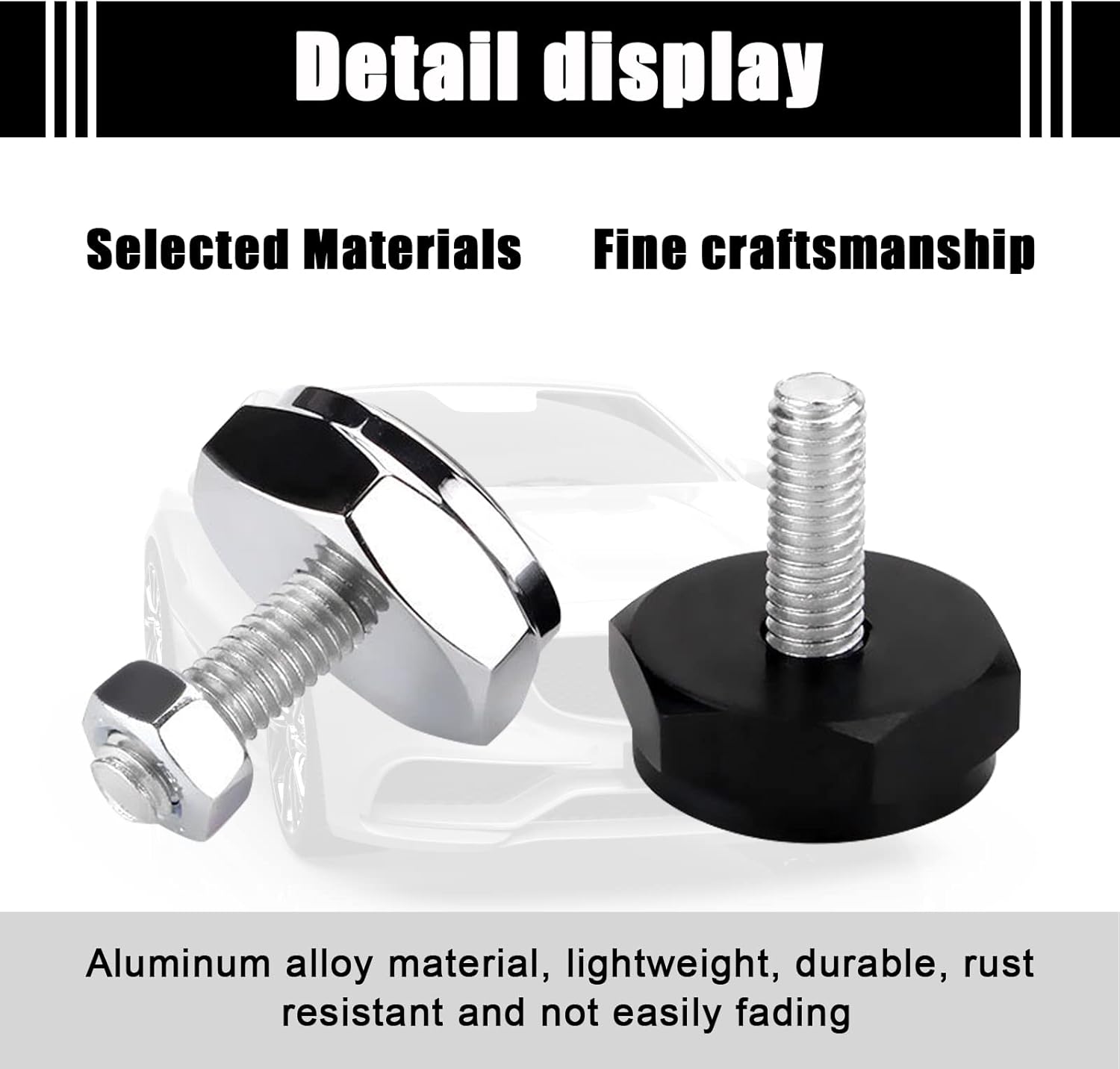 🚘 High Quality: This screws are made of aluminum alloy materil to ensure greater strength and durability. Lightweight and durable, rust-proof, not easy to fade.