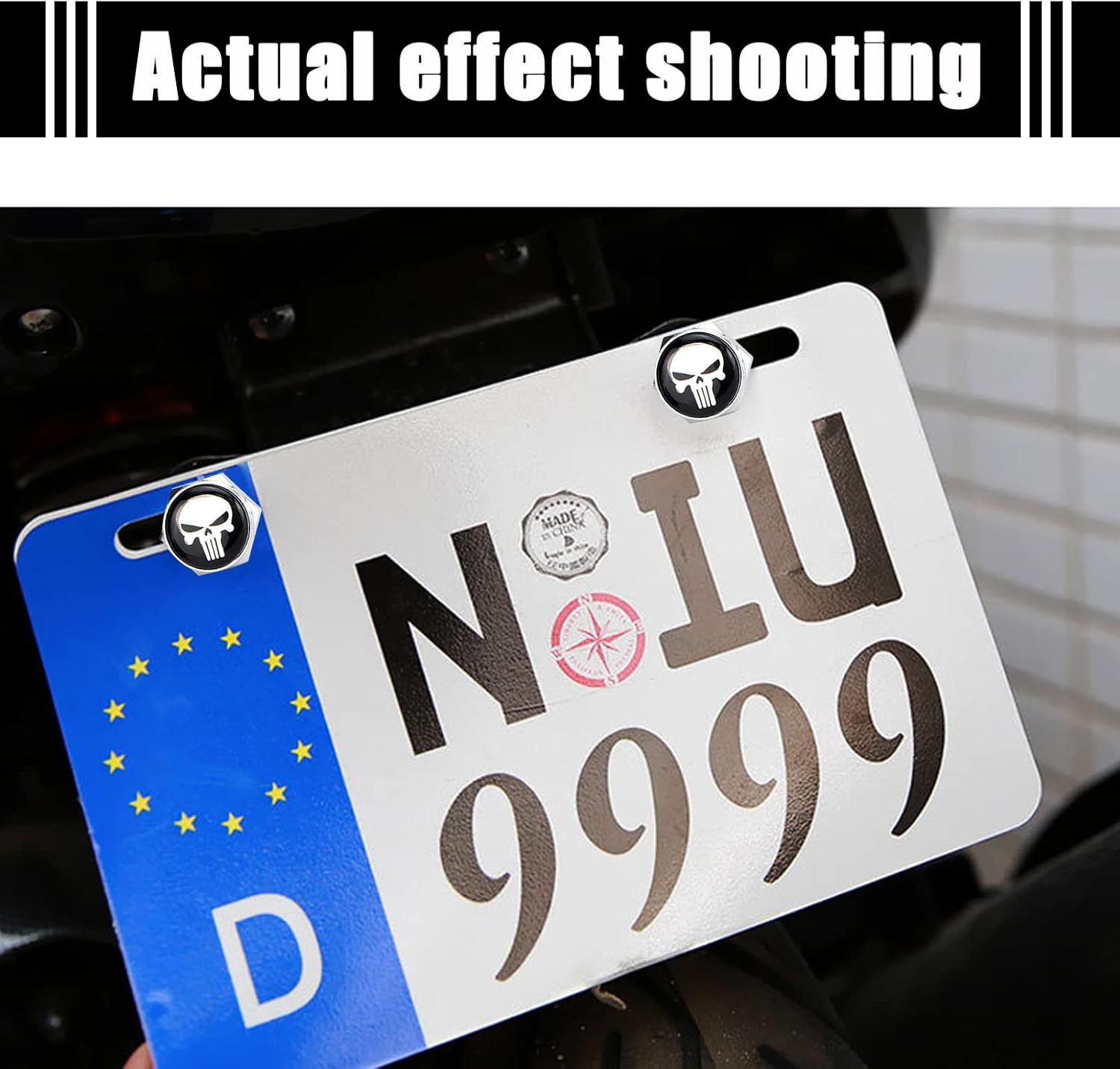 4 PCS License Plate Screw Fasteners, Skull License Plate Screws, License Plate Bolts Decorative Kit, Fit Vehicles Motorcycle Trucks SUV (Silver & White)