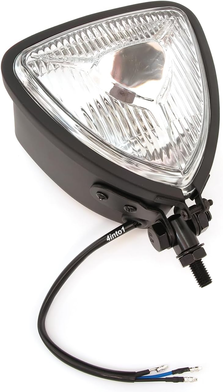 Be the first to review “4into1 Triangle Bottom Mount Halogen Motorcycle Headlight – Matte Black w/Clear Lens”