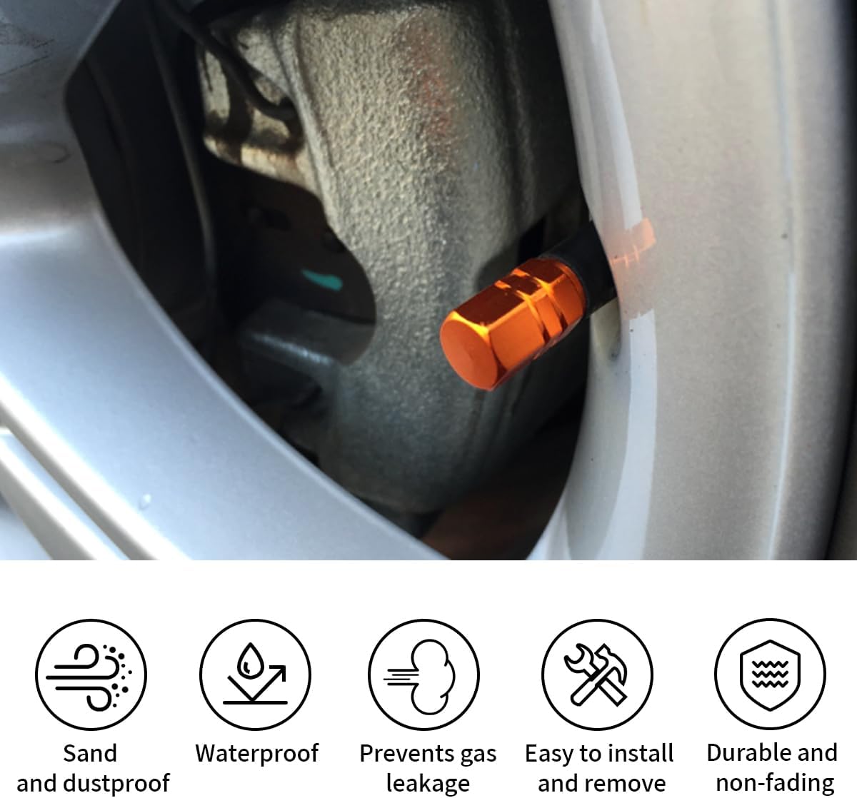 4PCS Car Tire Stem Valve Caps, Auto Hexagon Shape Dustproof Tire Cap Wheel Tire Valve Covers, Car Leak-Proof Air Protection Accessories for Cars, SUVs, Motorcycles, Bikes (Orange)
