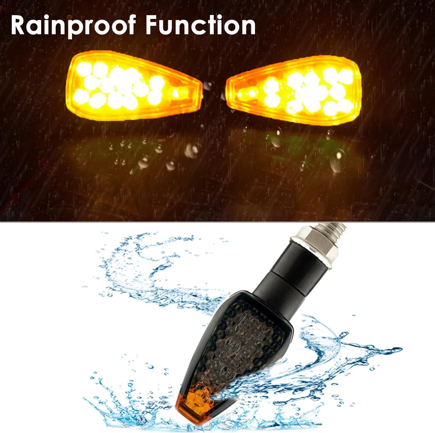 ✅【High Quality】Made of high quality clear lens and ABS plastic body, with an IP67 waterproof and dust-proof design, strong and durable,these motorcycle led turn signals can work in different weather conditions.