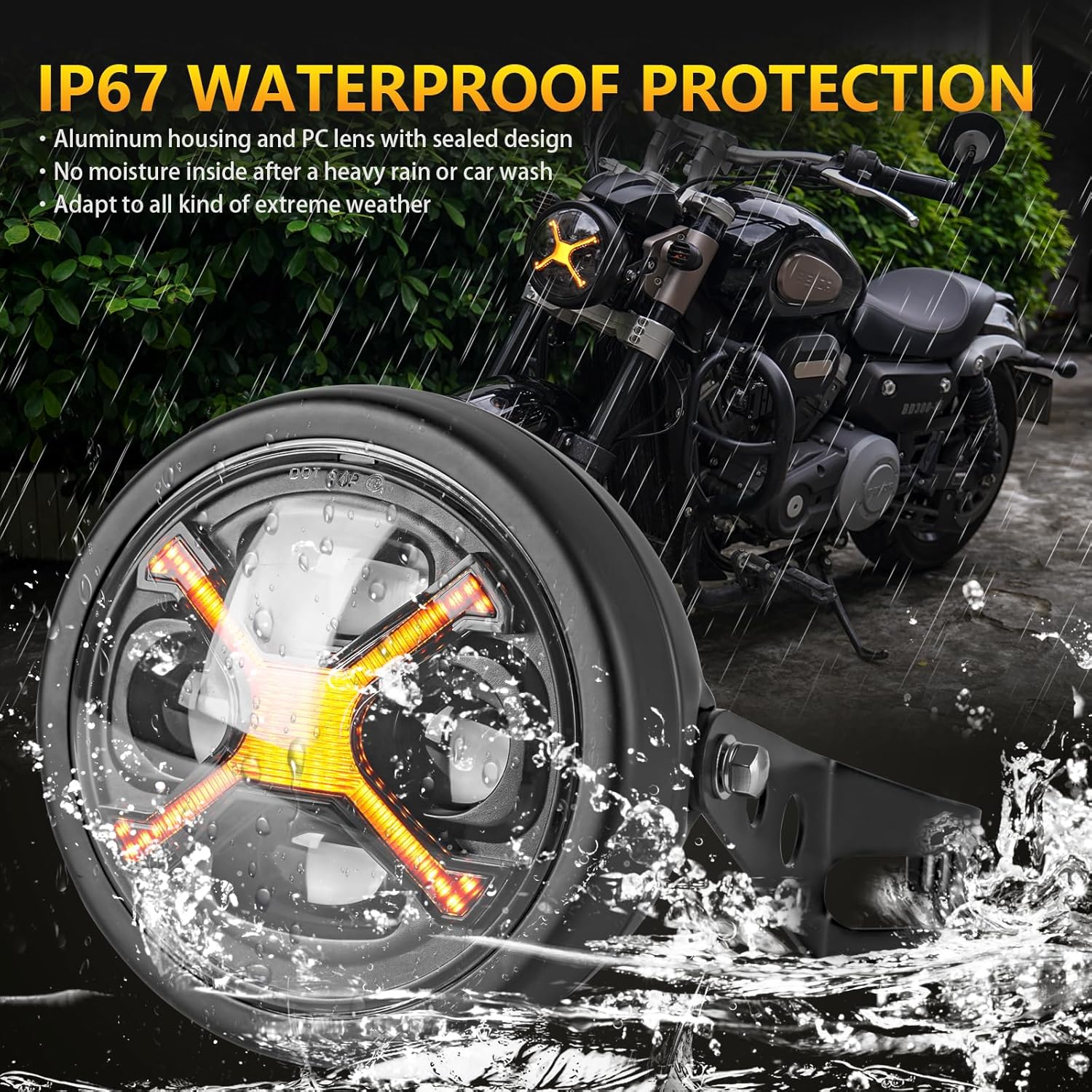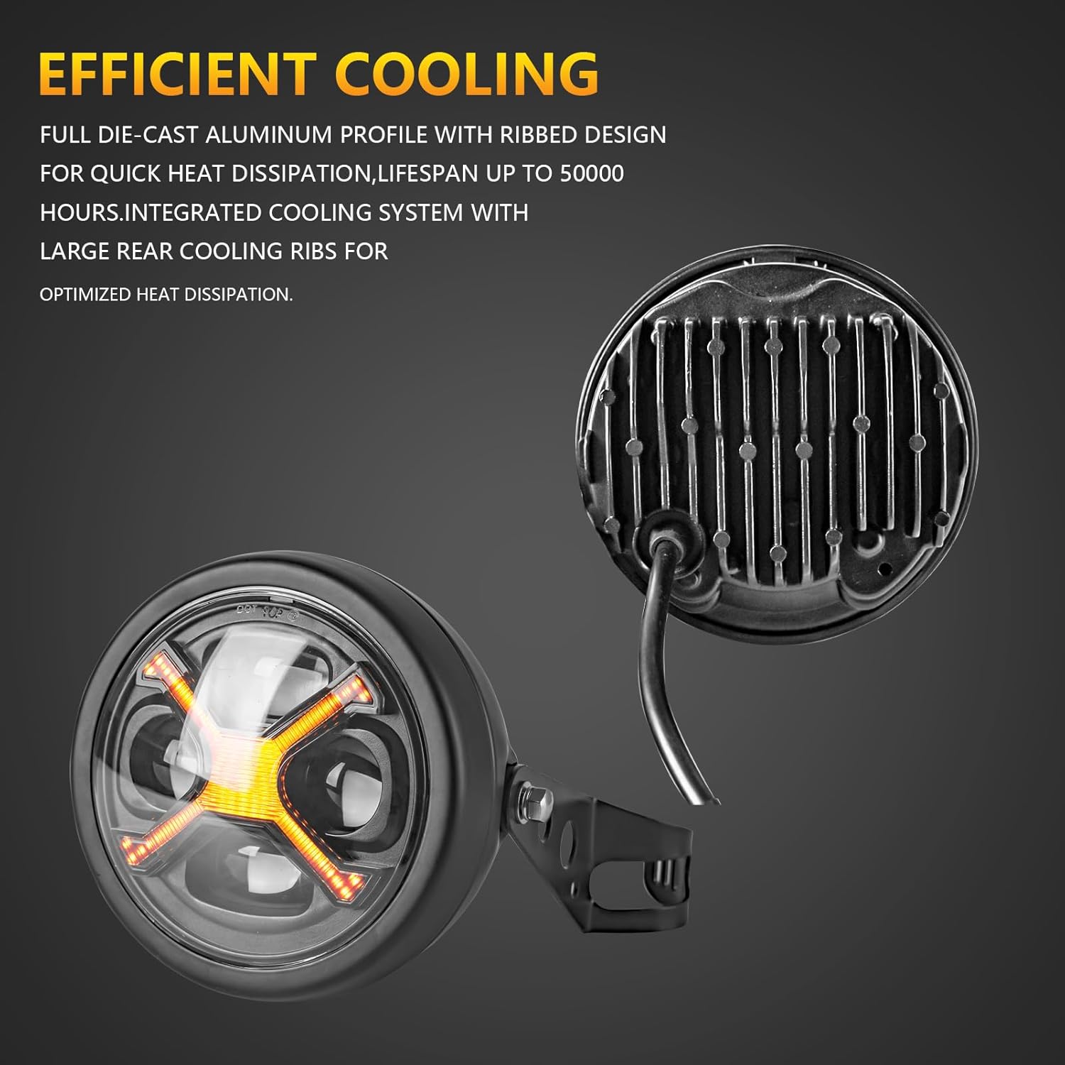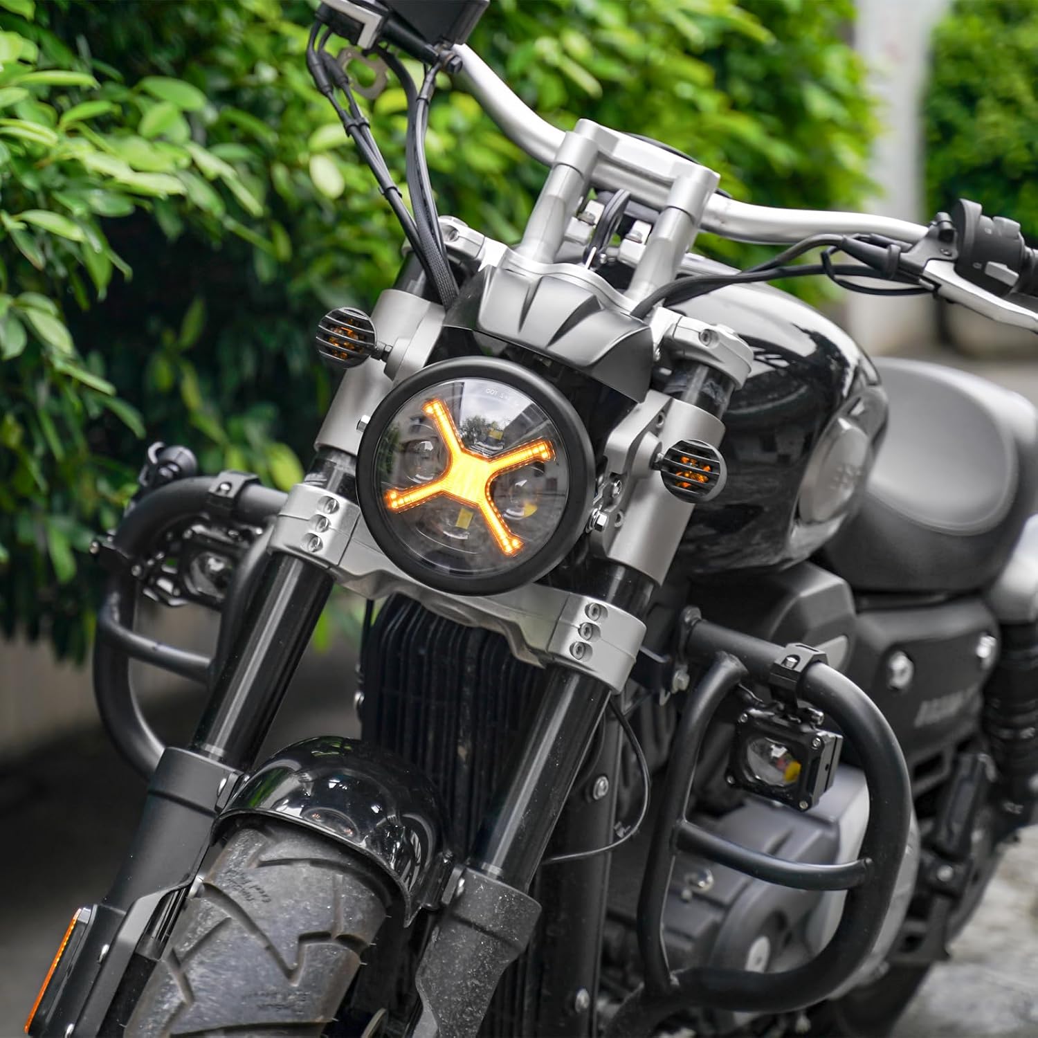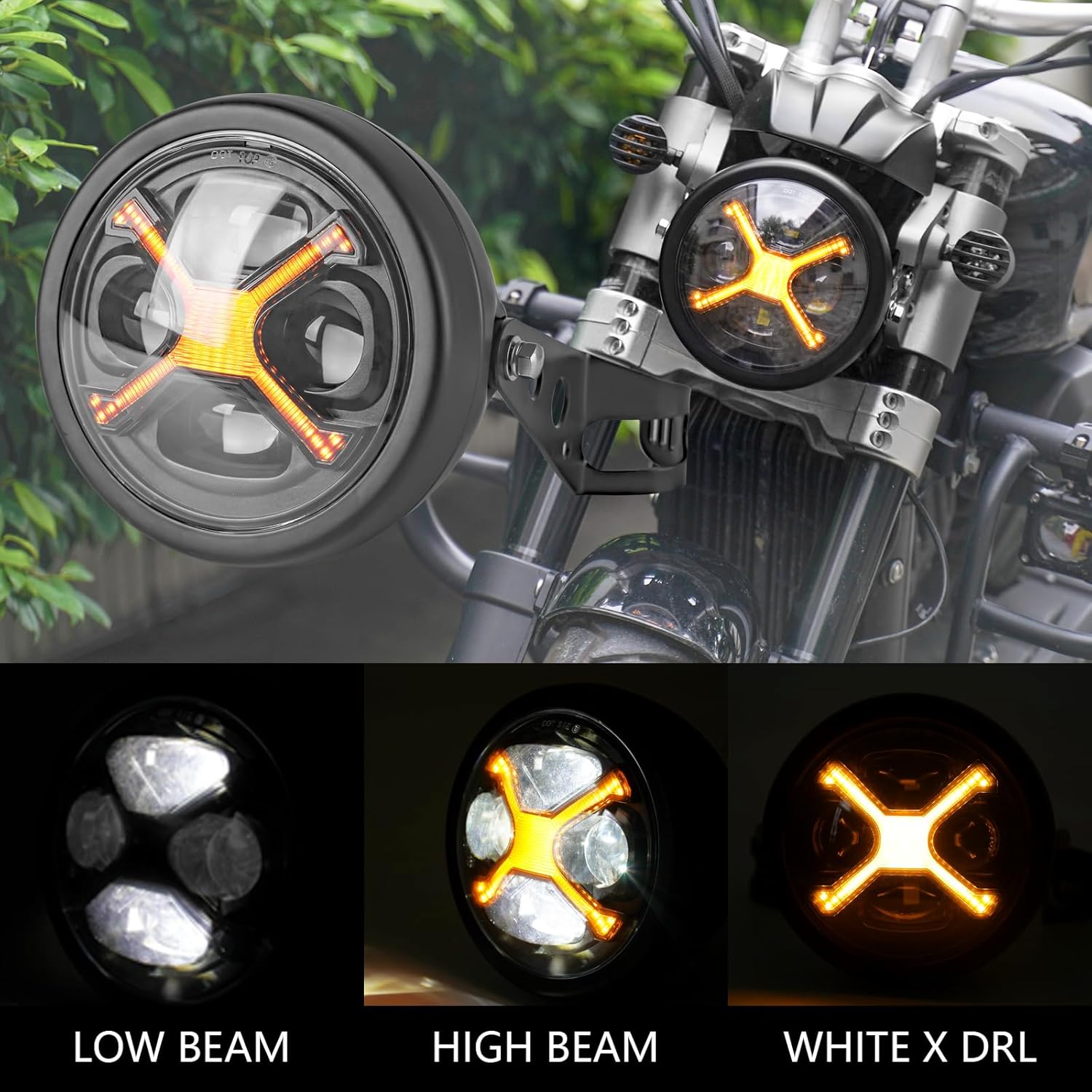 【Cool Appearance Design】Riasdy 5.75″ LED motorcycle headlight looks very unique. Wake up X shape design X Style Daytime Driving Light has two modes: white and yellow. Not only can you improve the driving field of vision, but it is also very suitable for personalized changes, so your motorcycle will be different. Not only can you be unique but also experience!