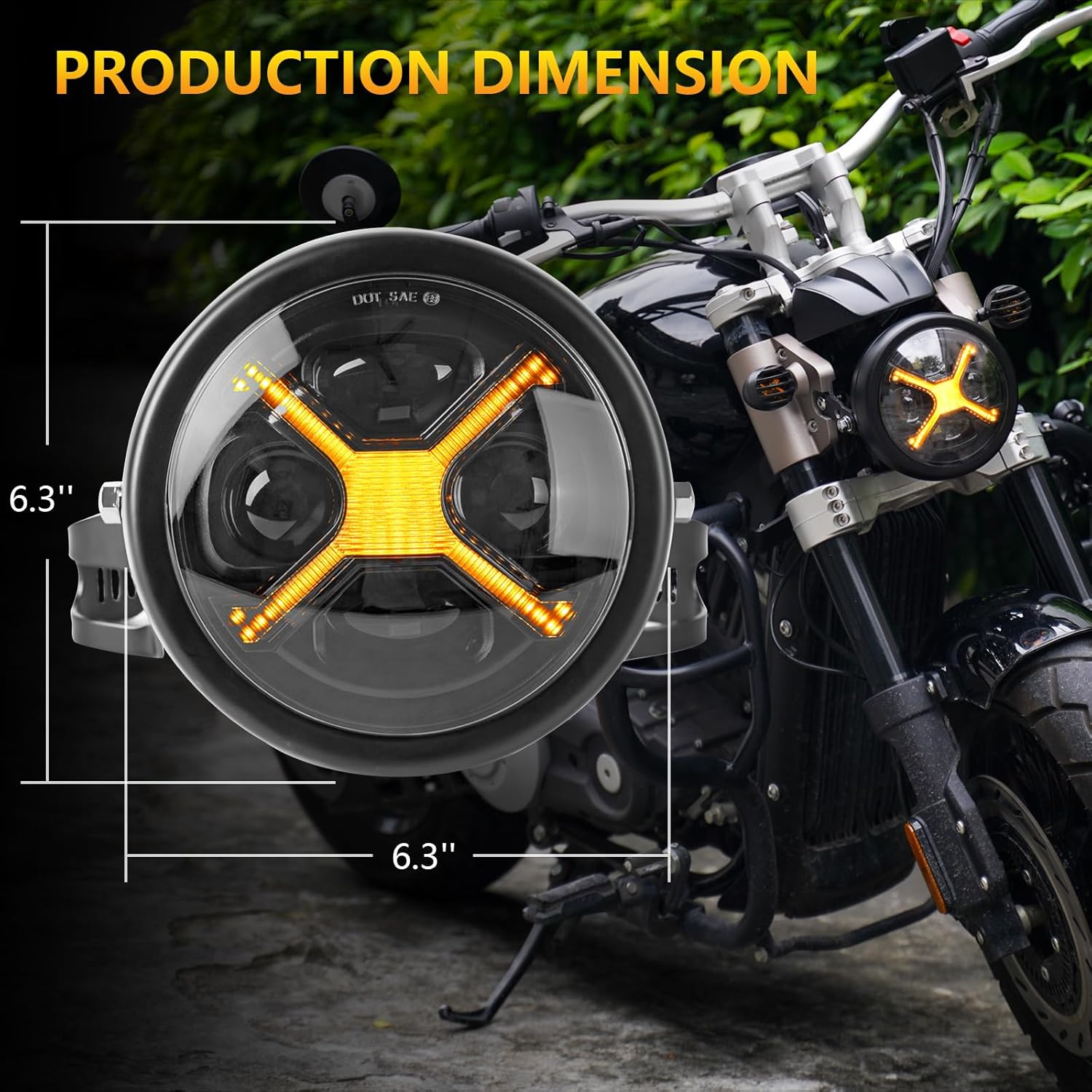 【Applicable Models】Motorcycle 5.75 inch LED headlights are suitable for any vehicle equipped with headlights of this size. Street XG500 / XG750, Street Rod 750, Dyna Super Glide/Wide Glide/Street Bob/Police Defender, Iron 883/Sportster 83, Sportster 72, Sportster 48, Sportster 1200, Low Rider, COV Breakout, Rocker C, 72, Softail Custom, Indian Scout/Scout Bobber and 5. -3/4 Compatible with other motorcycles with “round headlights.