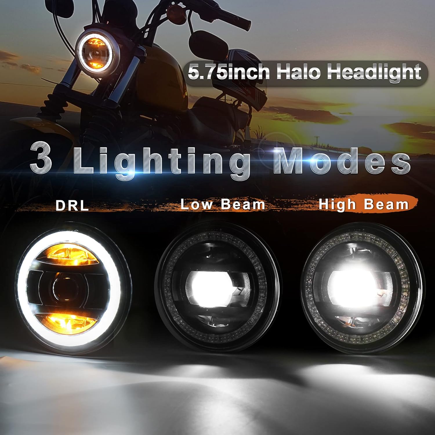 5 3/4 LED Headlight, DOT Approved 5.75 inch Motorcycle Headlight with White&Yellow DRL Crystal Halo Compatible with Harley Davidson Sportster Dyna Street Bob 883 Low Rider Night Rod