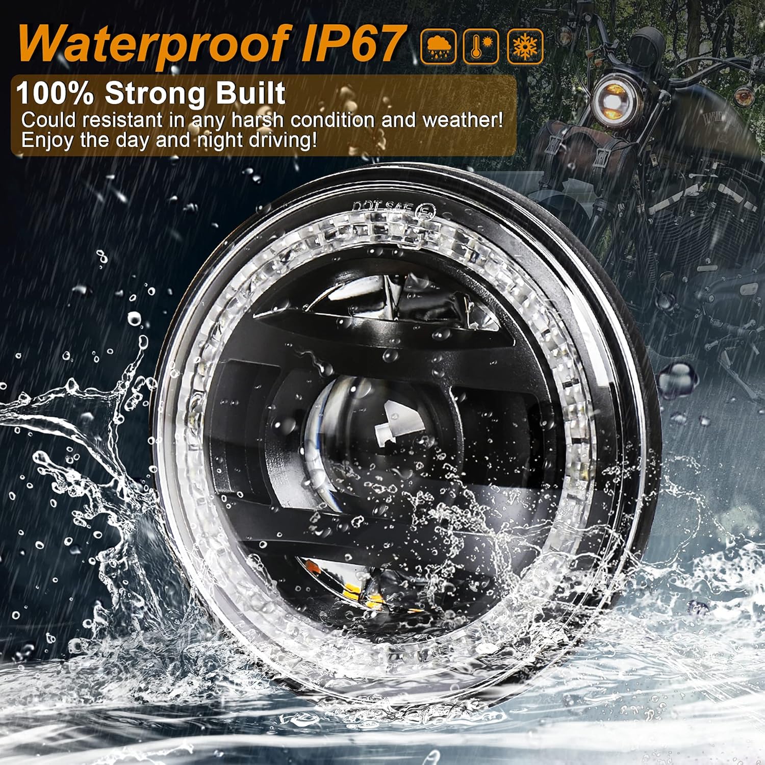 Durable Construction: Efficient heat dissipation aluminum housing with tough and anti-yellowing PC lens, 100% Sealed, Waterproof IP67, dust proof, shockproof, this motorcycle headlight could resistant in any harsh condition and weather! Enjoy the day and night driving!
