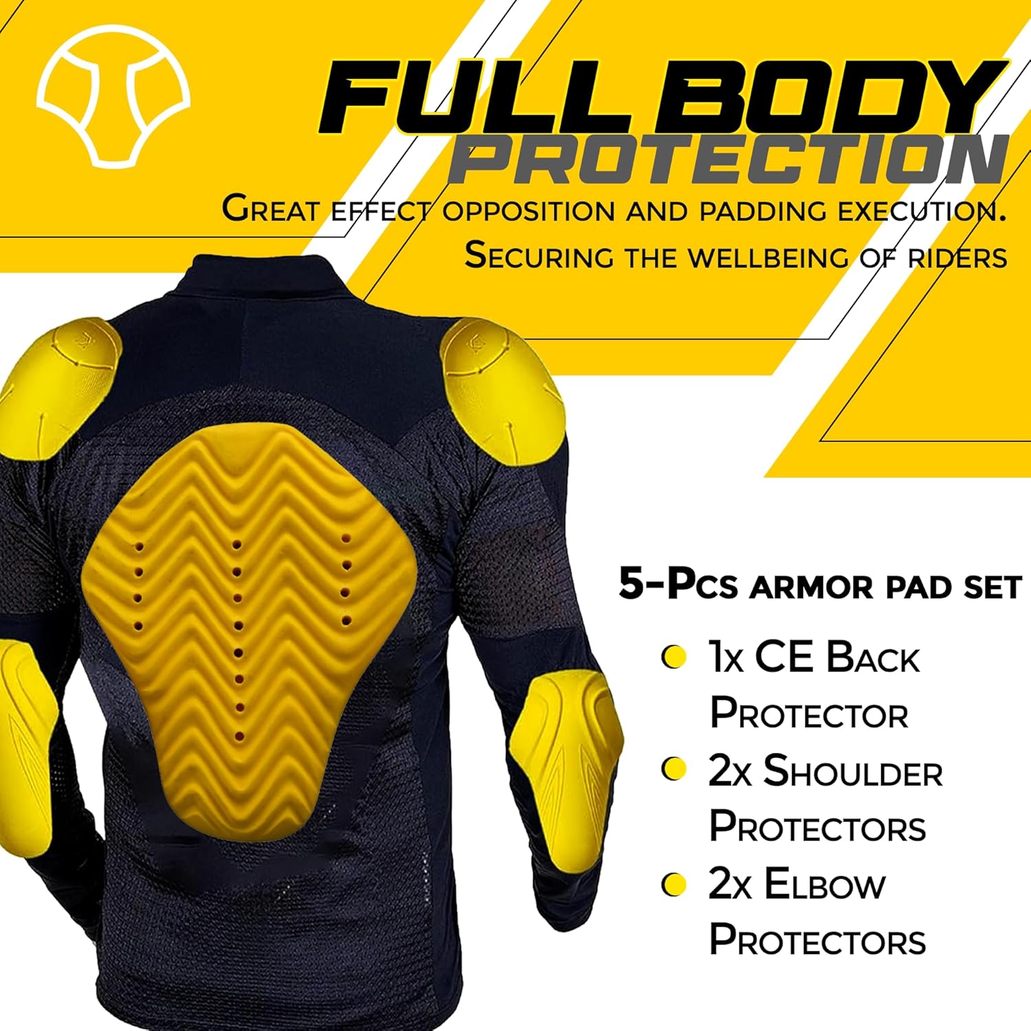 5 PC – CE Certified Armor Pads l Level 2 Approved Back, Shoulder and Elbows Armor Protector Inserts for Motorcycle Jackets