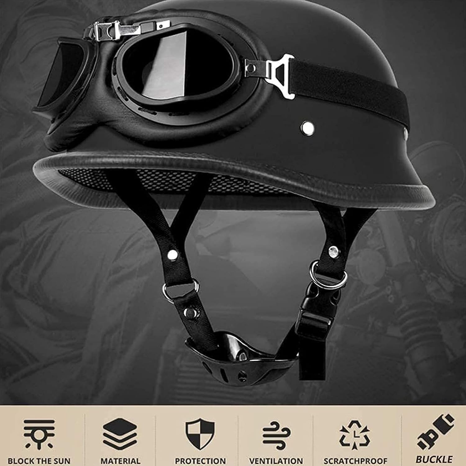 Name: Adult German Style WWII Retro Half Helmet Motorcycle Open Face Helmet Motorbike Skull Cap Helmets for Men and Women DOT/ECE Approved Summer Half Face Crash Helmet +Goggles