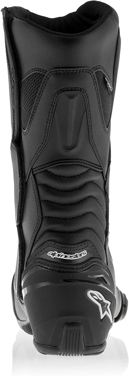 A new addition to the to Alpinestars class-leading SMX range, the SMX-S Waterproof is constructed from a durable microfiber that incorporates class-leading performance and protective attributes as well as a breathable and waterproof membrane. • Durable microfiber upper construction offering superb levels of flexibility and comfort.• Ergonomic new last for forefoot streamlining to enable greater precision on the bike’s controls and for superior, wide-ranging foot profile, fit and comfort.• Lateral TPR-injected ankle support construction offers optimized levels of protection and stability.• Medial side entry opening/closure system features elastic-mounted zipper with wide velcro closure for flexibility and secure fit. The aperture opening is large to promote easier entry/exit.• Alpinestars’ new and exclusive compound rubber sole promotes improved feel and grip, water dispersion and durability. • SMX-S Waterproof Boot is CE certified.• New, ergonomically optimized TPU shin plate protector is racederived for superior impact and abrasion resistance. • Incorporating a waterproof and breathable membrane for high levels of comfort and weather performance.• TPU double density ankles protectors are layered under the upper in both lateral and medial side for excellent all-round levels of protection.• Integrated, replaceable bi-injected TPU slider features new easy noscrew fixing concept for quicker and easier replacement.• Shift pad made from TPU incorporates technical texturing for protection and grip.• Internal toe box protection is layered under the upper for durability, improved feel and performance.• New, dual compound removable anatomic foot bed includes EVA and Lycra for performance, comfort and support.