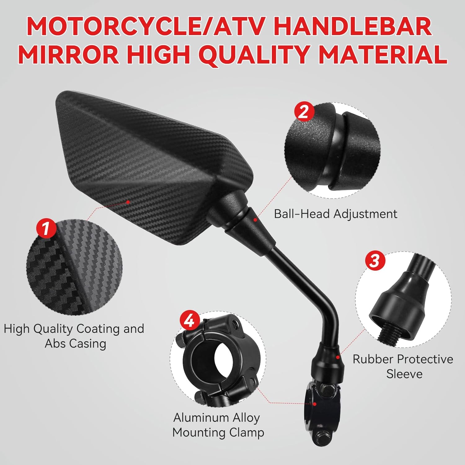 ATV Mirror Side Rear View Mirror,GEVINFA Motorcycle Mirror for ATV Bike Scooter Cruiser Moped Snowmobile With 7/8″ Handlebar Mount,8MM 10MM Screw Compatible with Victory Yamaha Kawasaki KTM and More
