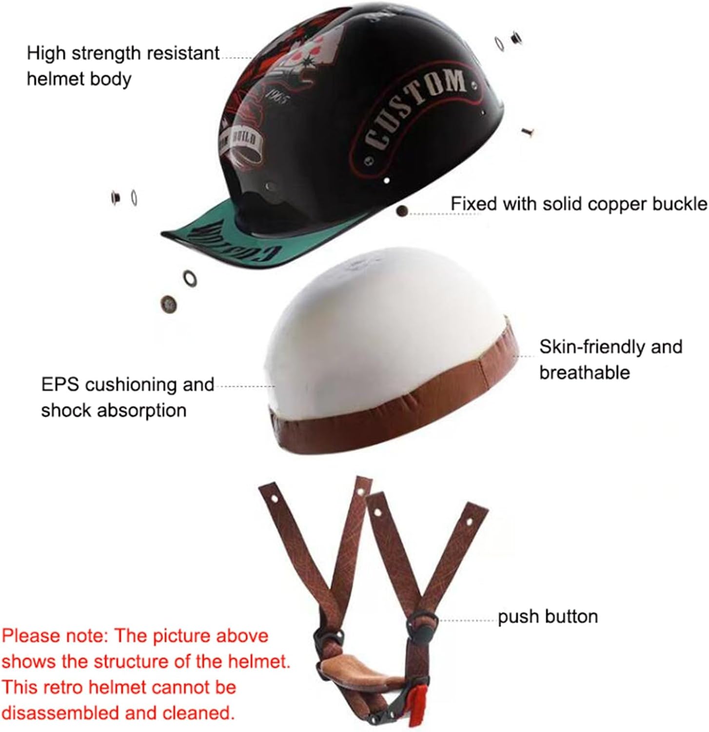 Baseball Cap Helmet,Motorcycle Half Helmet,Open-Face Helmet,German Style Skull Cap Helmet,Motorbike Cruiser Scooter Cool Helmet,for Men and Women,DOT/ECE Approved