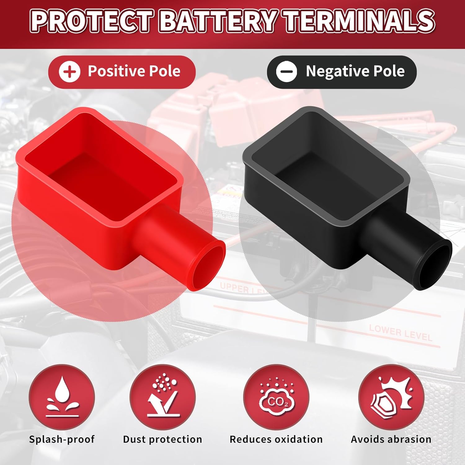 【PROTECT BATTERY TERMINALS】 Car battery terminal cover can fully protect the battery terminals, with the function of splash-proof, dust-proof, oxidation-reducing, and avoiding wear and tear. Battery terminal covers are available in red and black, which can better help you to distinguish between positive and negative battery terminals.