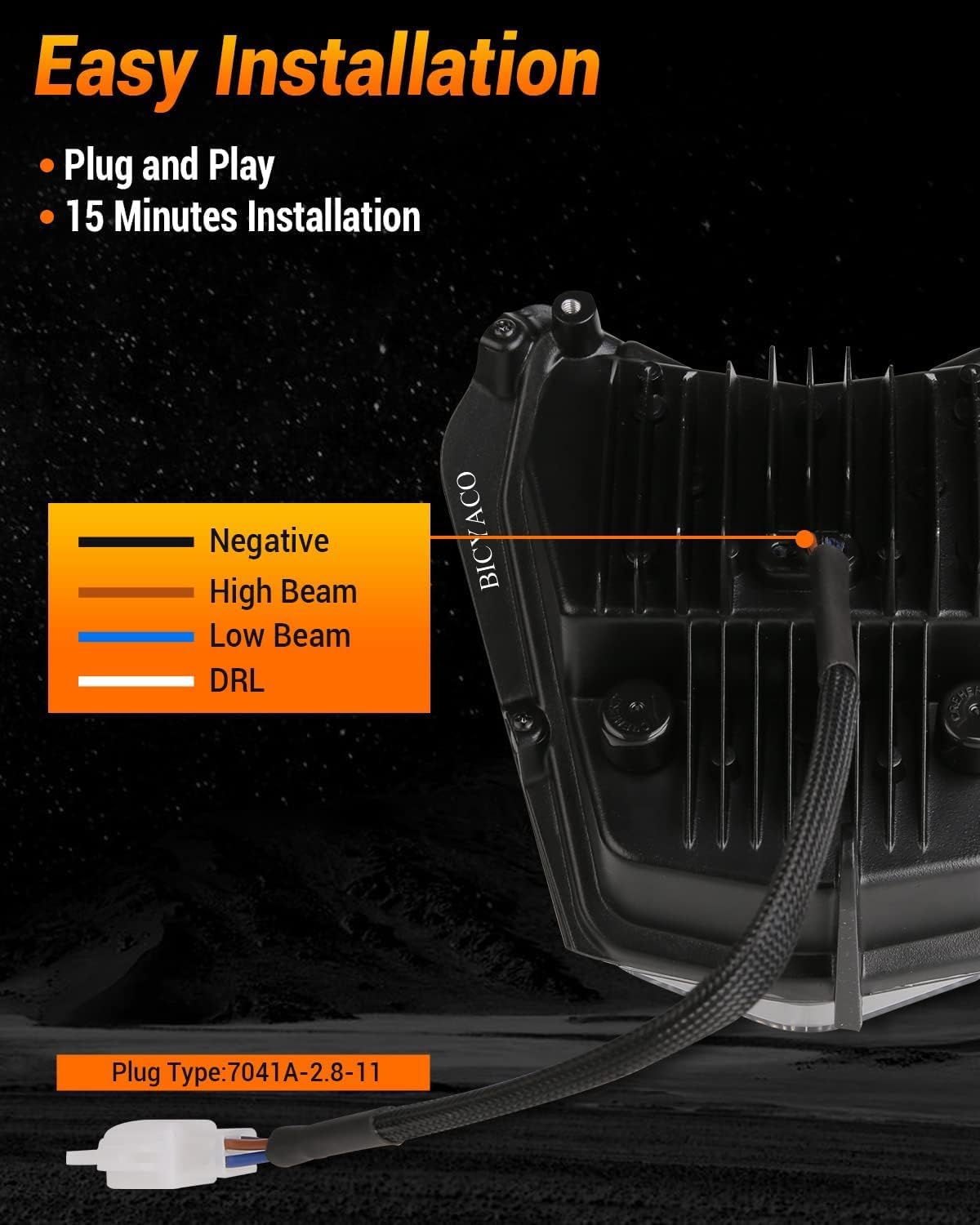 Plug and Play: The motorcycle headlight is installed with rubber straps, and the location of the installation point allows sufficient space for the brake cable. Just plug and play, 15 minutes to finish the installation.