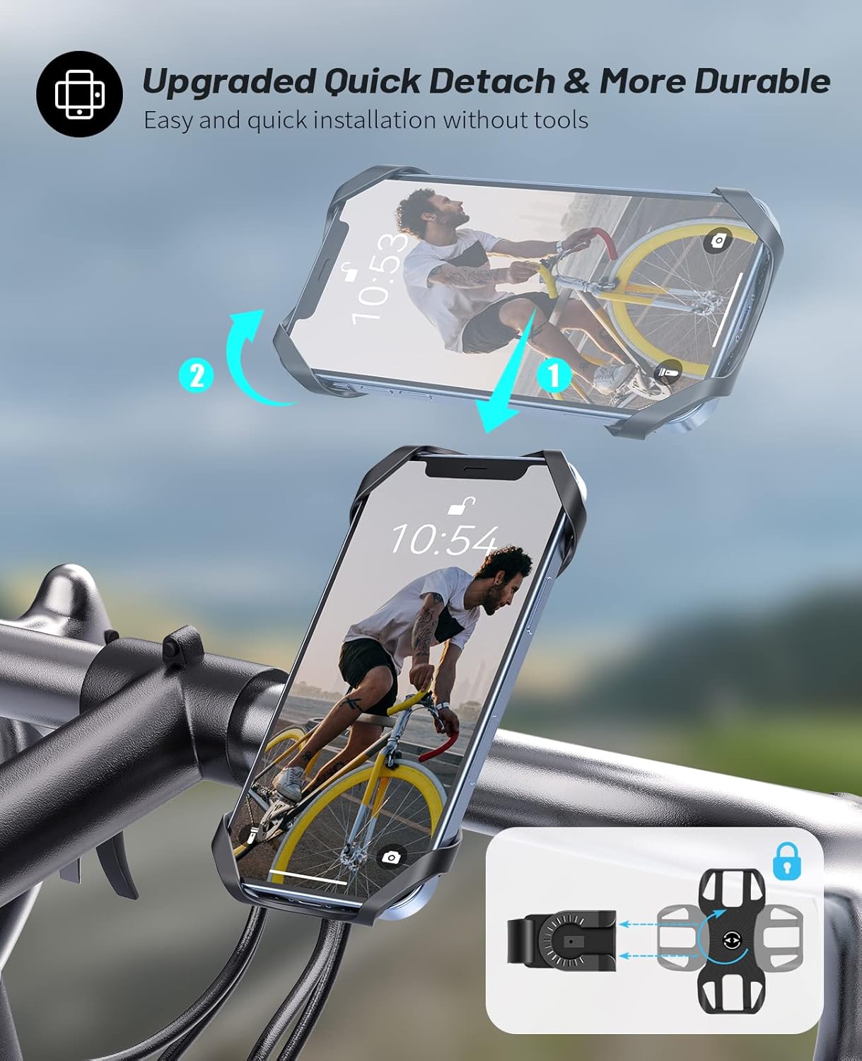 Detachable design – The detachable bike phone mount allows you to take your phone out without removing the entire bike phone mount. You can easily send and receive email or text messages, take calls, take selfies and much more.
