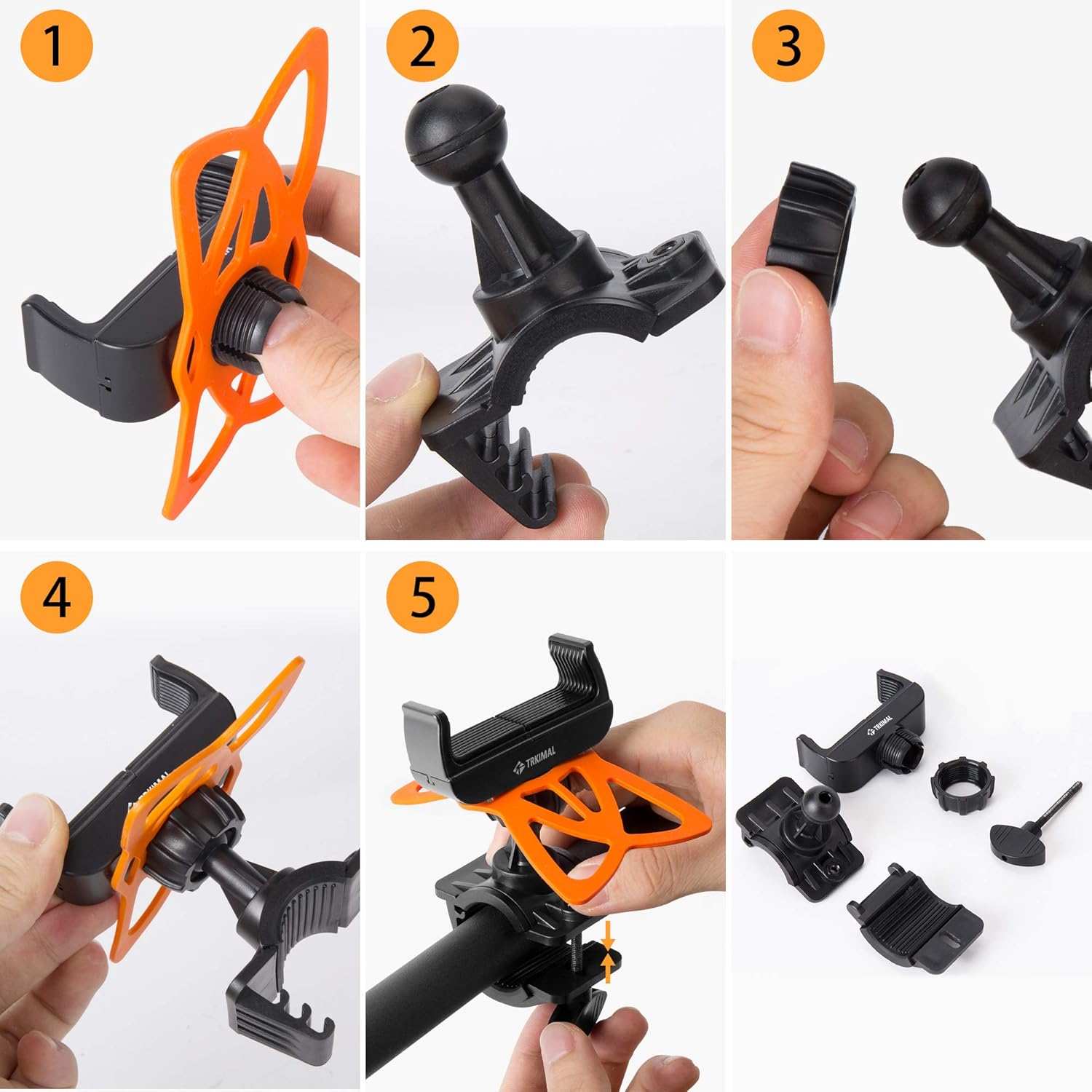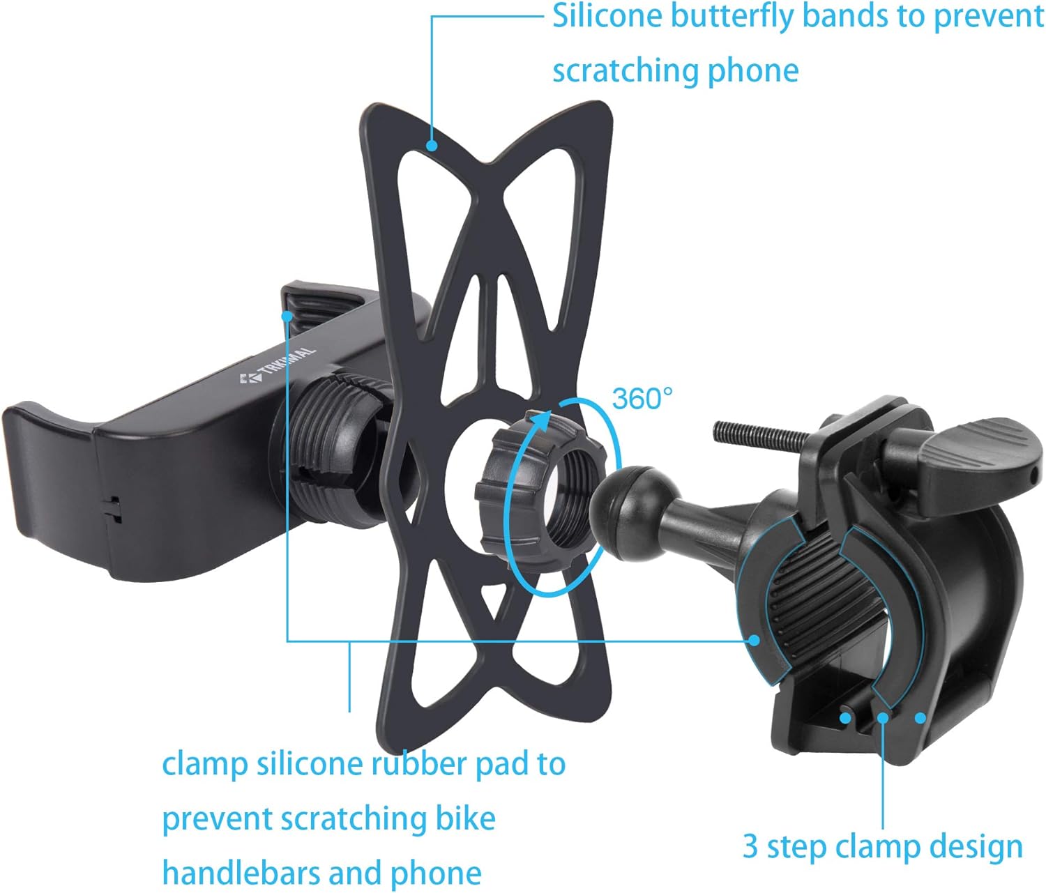 【3 Silicone Butterfly Bands, Double Security】The handlebar phone mount comes with three elastic silicone butterfly bands to protect phones from scratching. There is extra protection to use two bands together, double security. We provide three butterfly bands in 3 colours (Black, Orange, and Red) which can be alternate used.