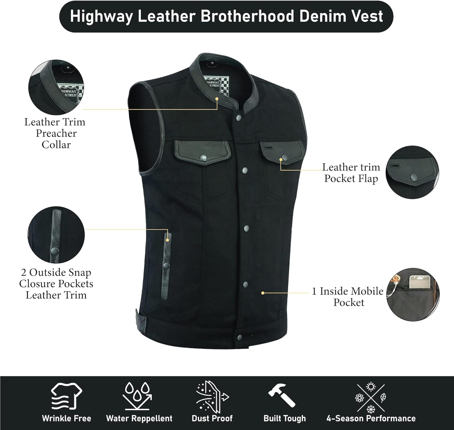 Our Brotherhood DENIM Motorcycle Vest is one of our finest Vests offered. It is the best fitting Outlaw style Vest in the marketplace. It is inspired by classic denim motorcycle vests