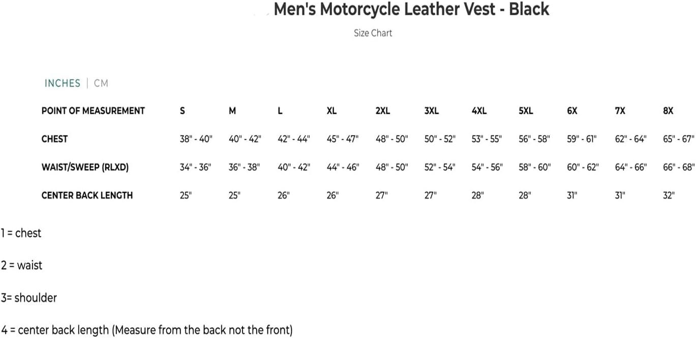 0.9 – 1.0 mm soft Milled CowhideClub style vest with banded collar, covered snaps and hidden cropped center zipperTwo snap down chest pocketsTwo snap down slash pocketsTwo conceal carry pockets with tapered holstersInterior cellphone pocketSingle panel back up to size 5XLMesh lining with easy access panels for patches and embroideriesYKK zippers
