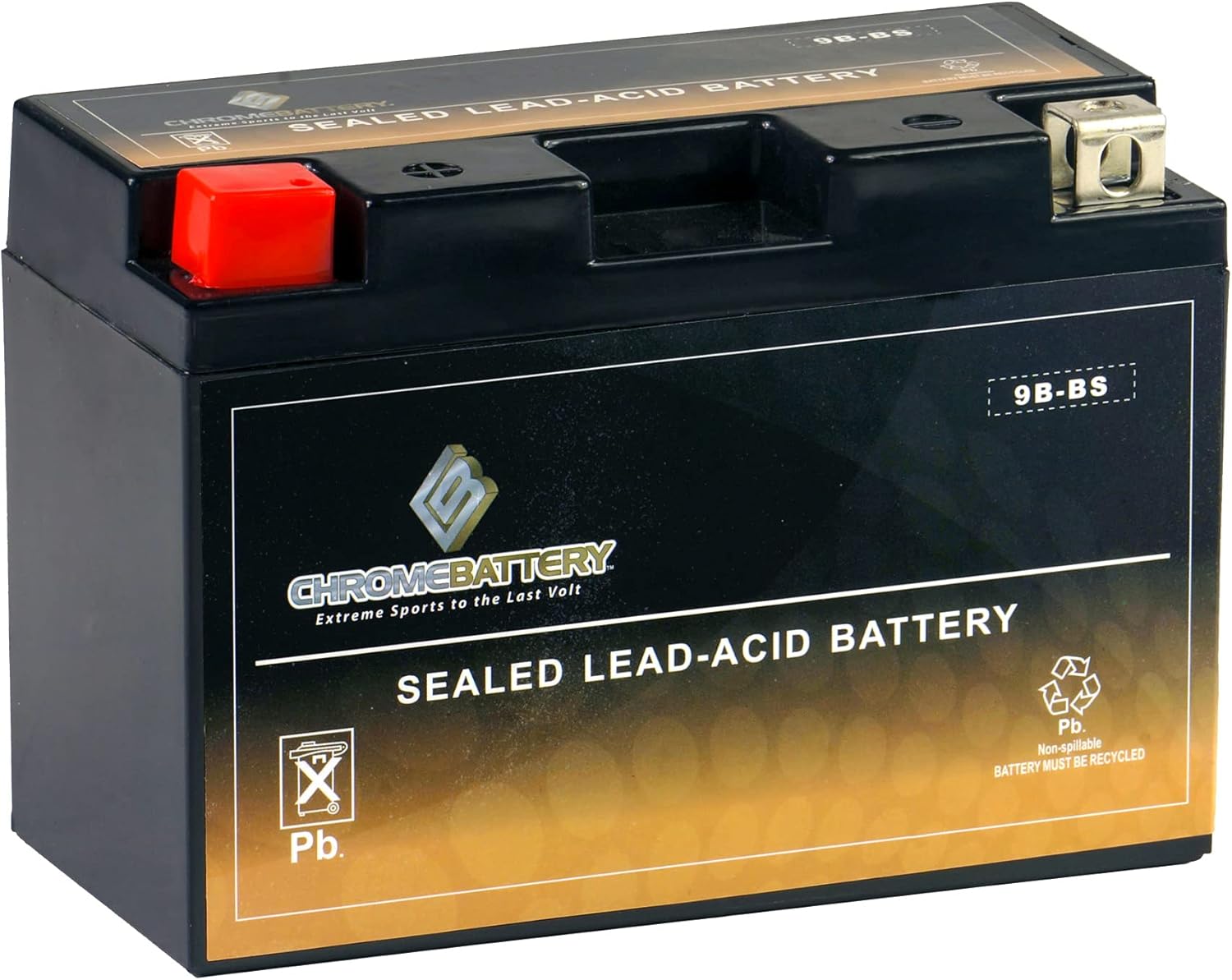 Chrome Battery YT9B-BS Maintenance Free Replacement Battery: 12 Volts, 8Ah, Nut and Bolt (T3) Terminal
