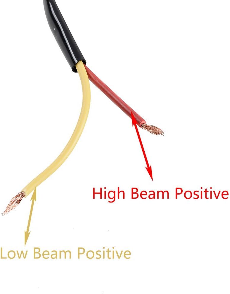 Two Wire Connection: Red for High Beam Positive, Yellow for Low Beam Positive