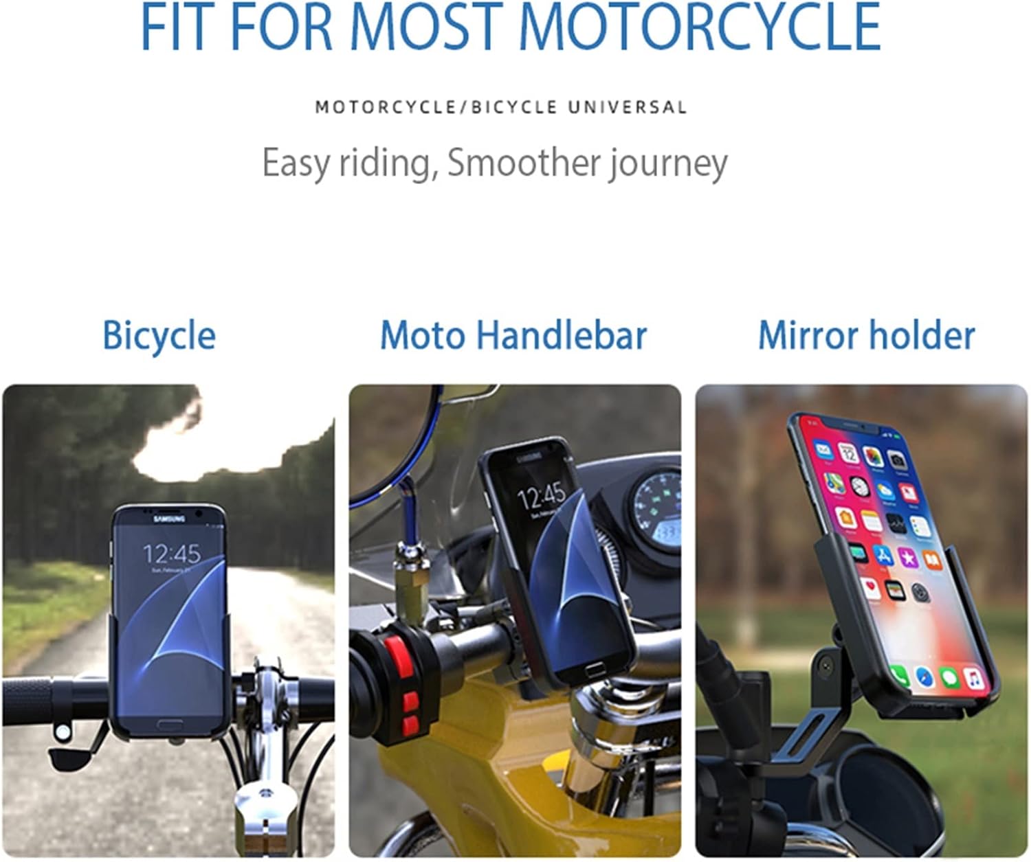 ◆ Anti-vibration protection: Adjustable motorcycle phone holder with silicone pad, high quality CNC material will not be damaged. Motorcycle phone holder will prevent your phone from being scratched and vibrated.