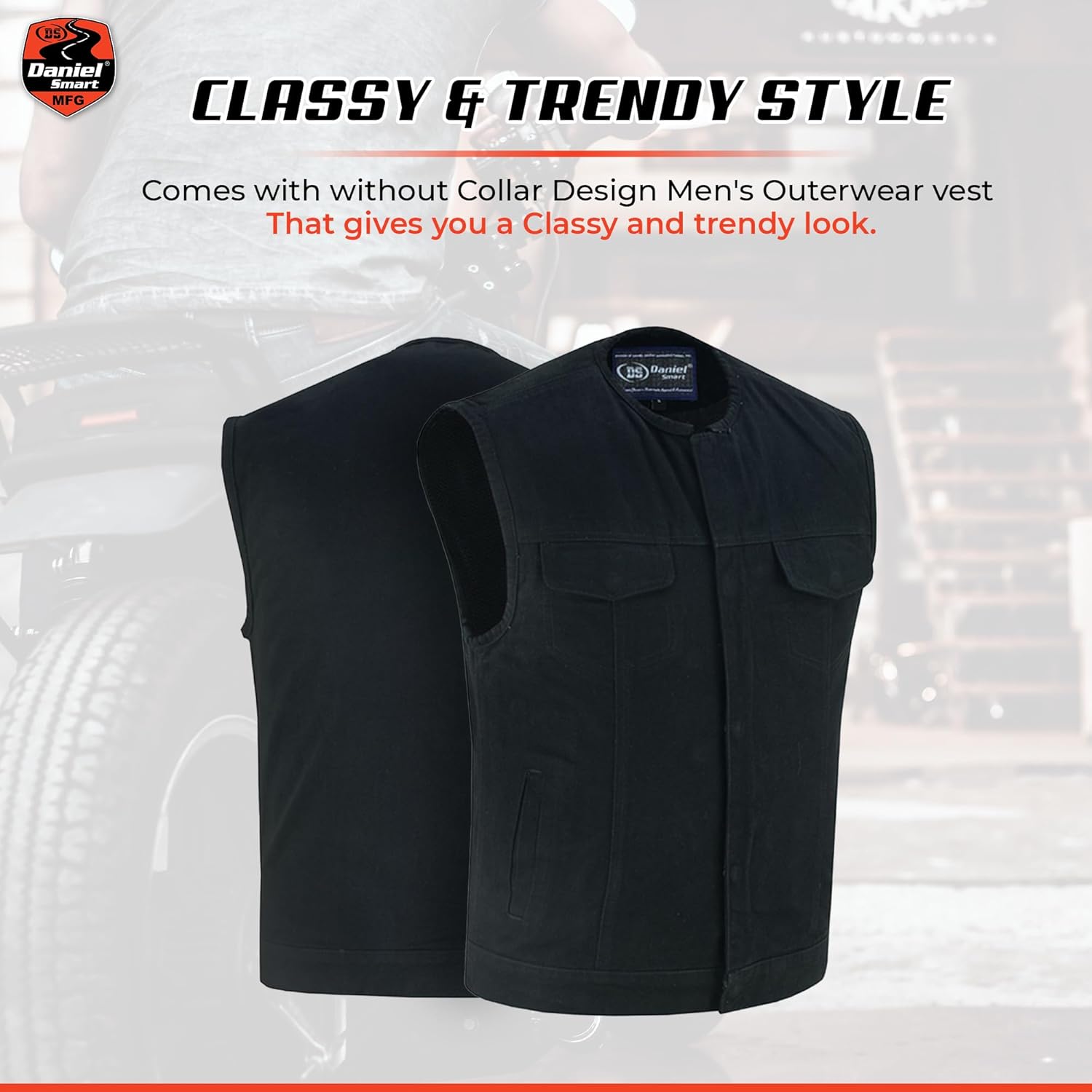 Daniel Smart Biker Vest for Men Unique Raw biker vest Without Collar Design with concealment Armory Pocket