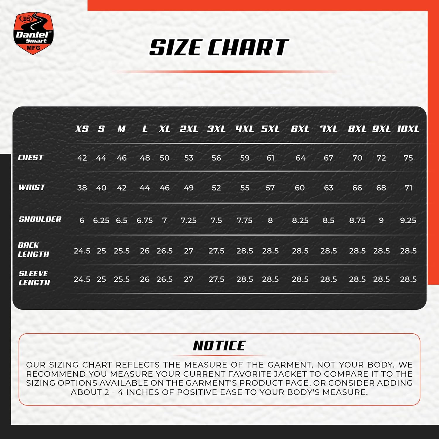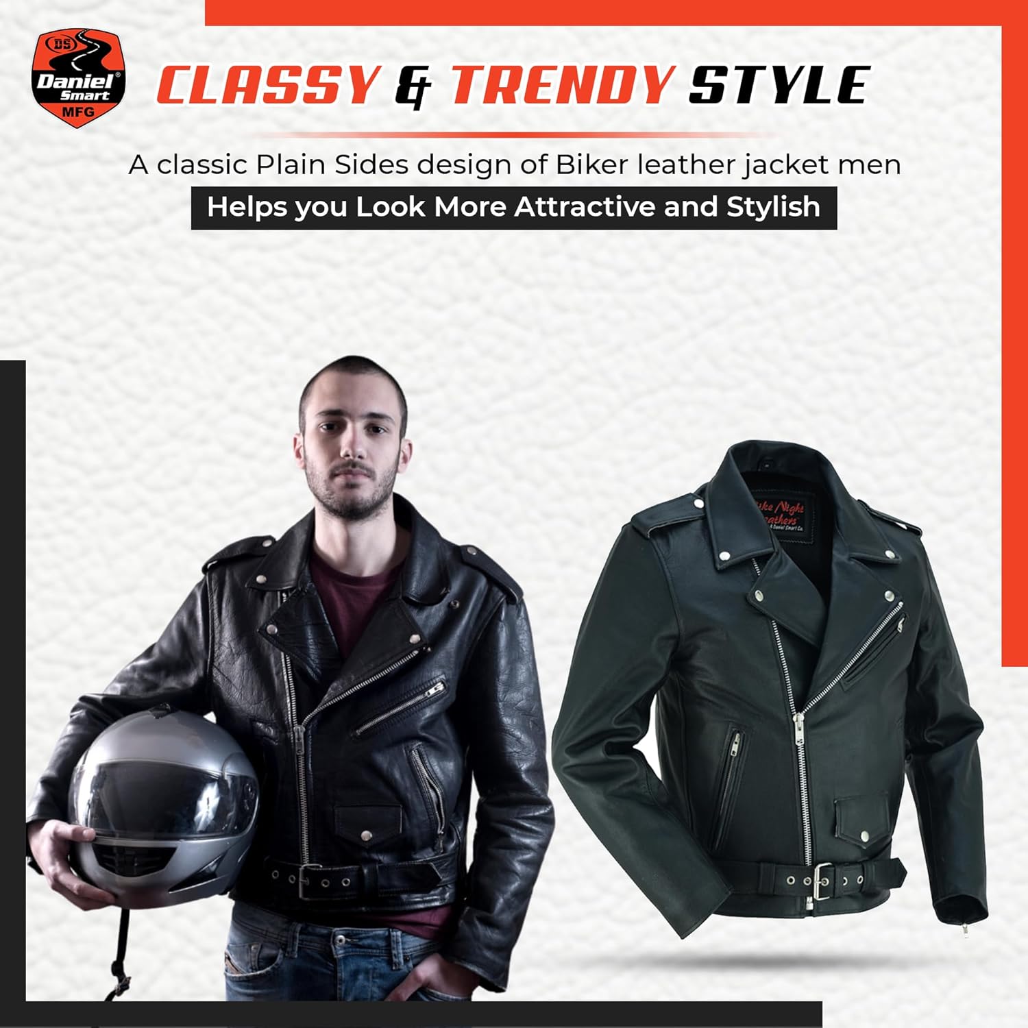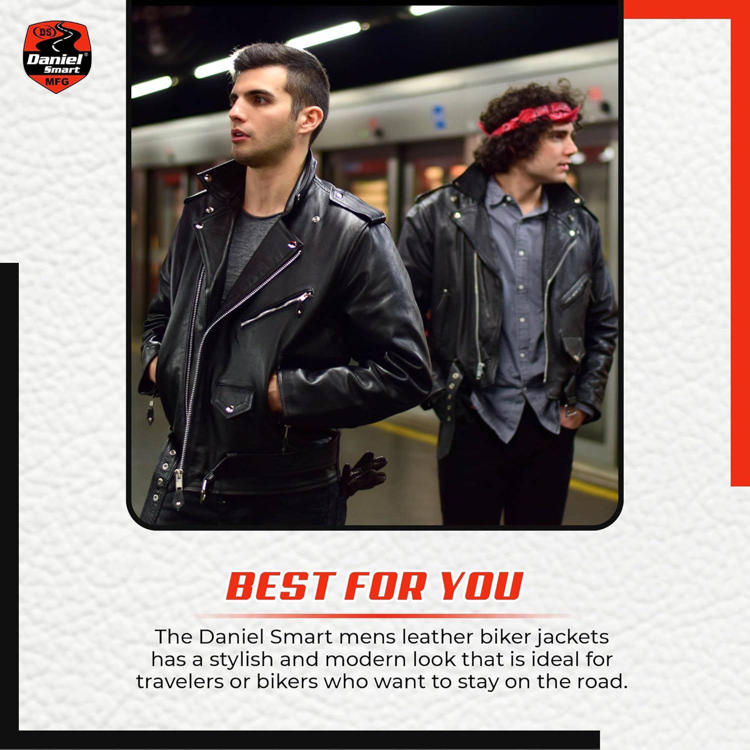 Daniel Smart got you covered if you’re looking for a high-quality biker leather jacket men at a fair price. A classic men motorcycle leather jacekt, one-of-a-kind design that will make you more attractive and quilted high-Quality polyester lining to ensure extra warmth. Daniel Smart Classic Men’s jacket for men leather motorcycle is available in sizes ranging from S to 8XL to guarantee you receive the finest fit. The Daniel Smart jacket motorcycle leather has a stylish and modern look that is ideal for commuters or bikers who want to stay on the road. Please consult the sizing chart image for further information.
