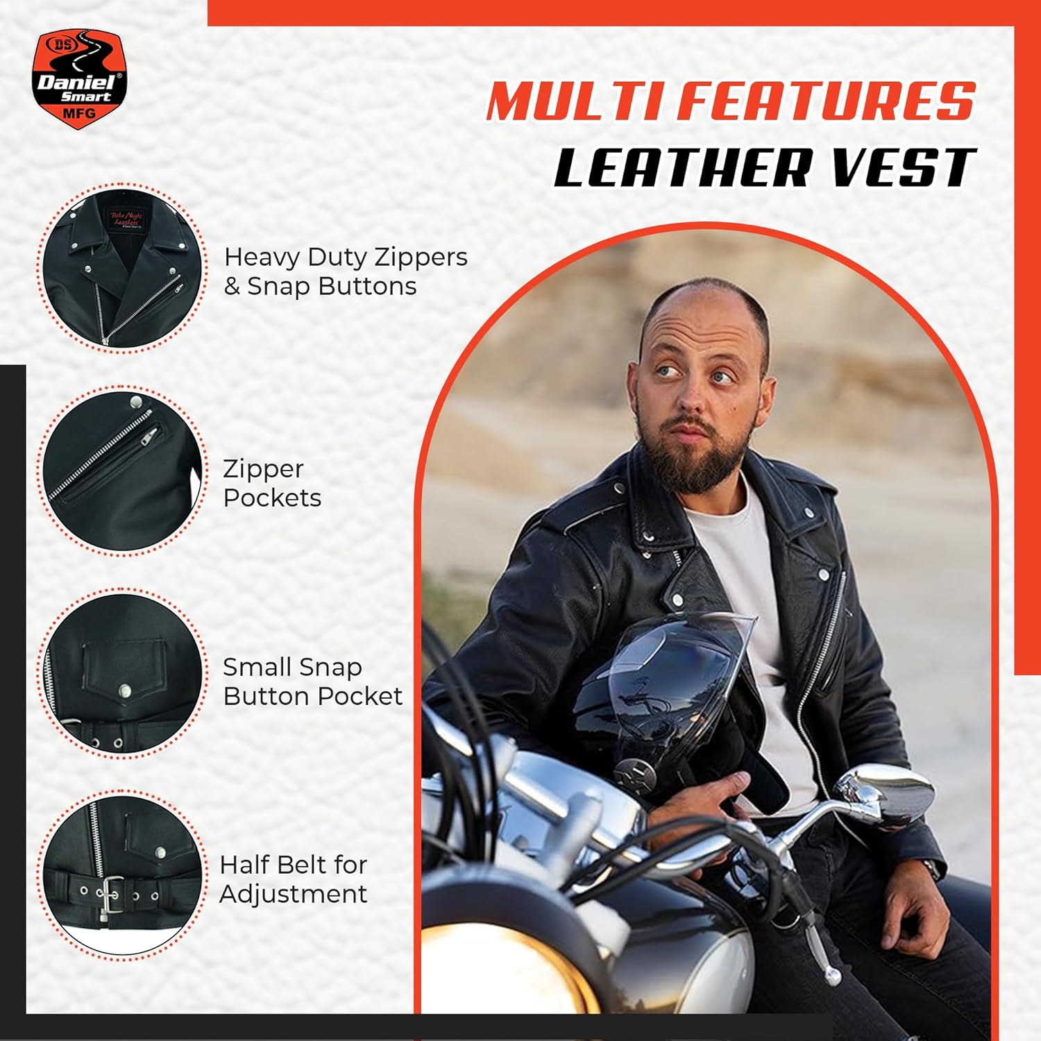 Daniel Smart Men Motorcycle Leather Jacket Black Economy Biker Leather Jacket with Concealment Armory Pocket