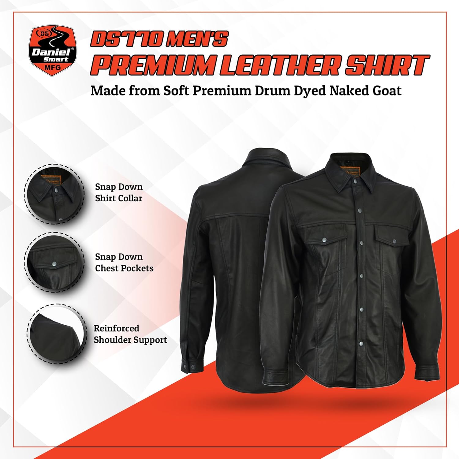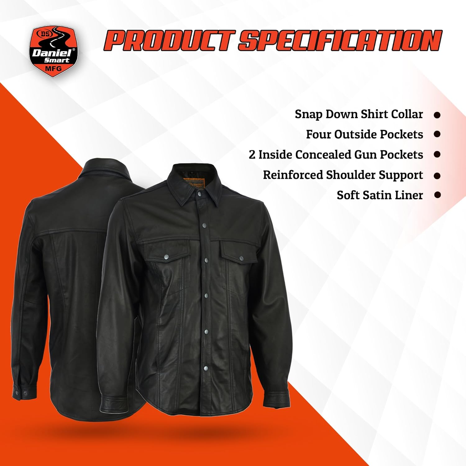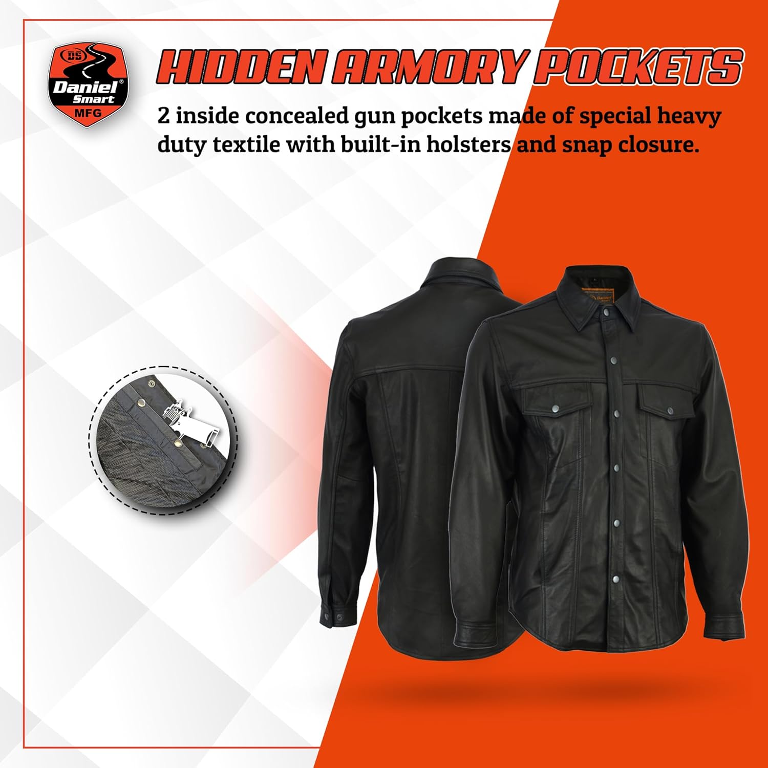 Daniel Smart Men’s Leather Shirt – Black Premium Casual Lightweight Shirt with Concealed Armory Pocket