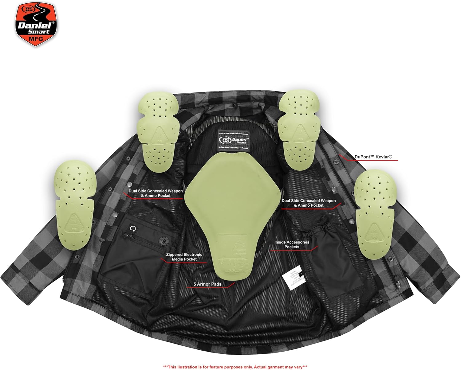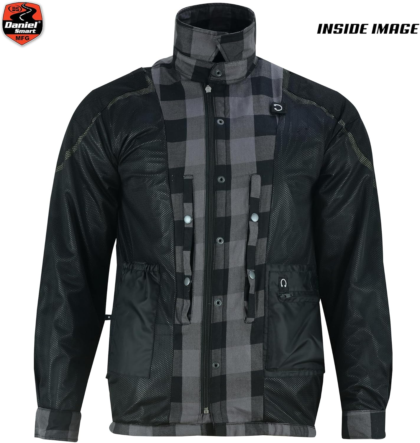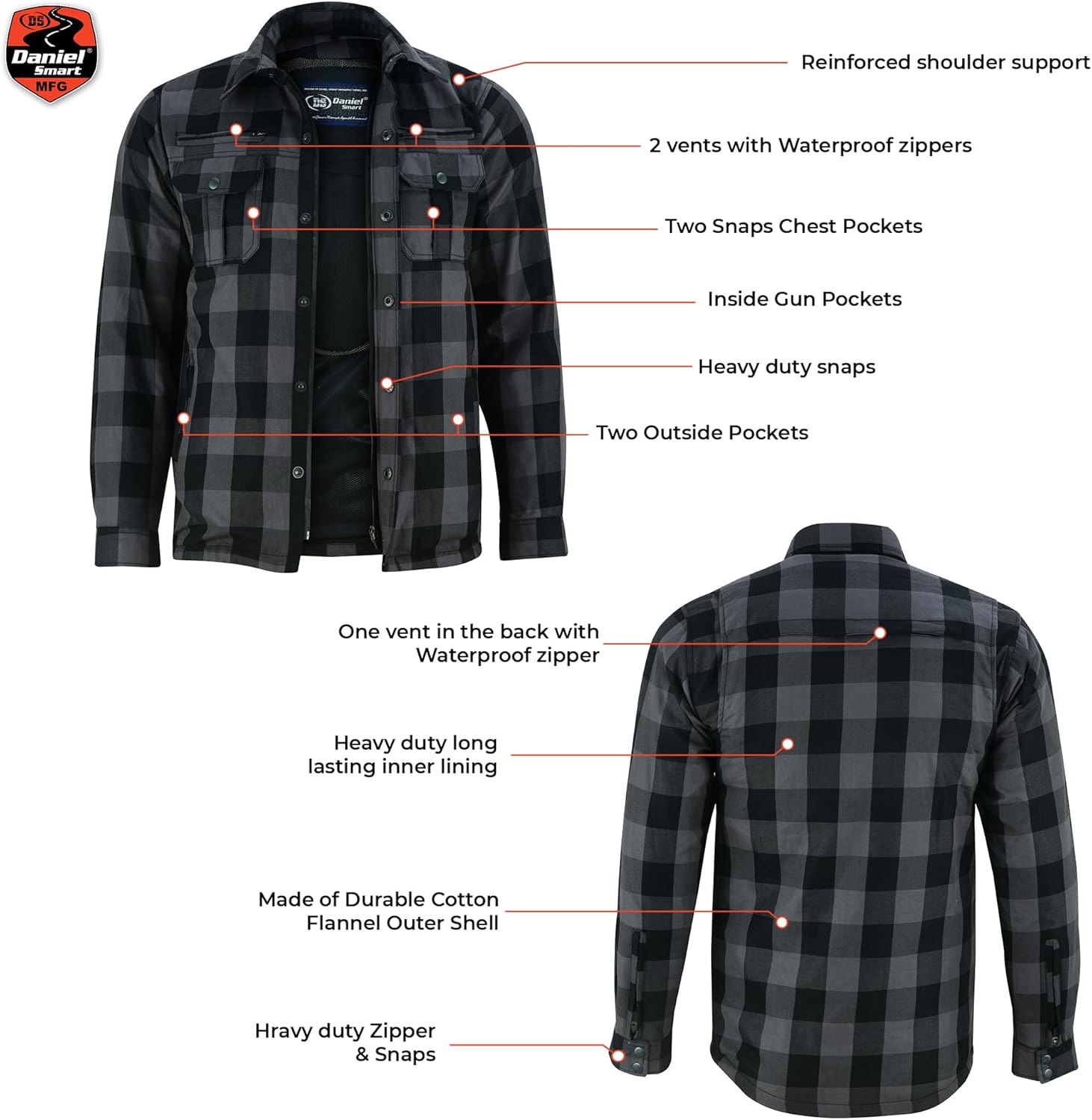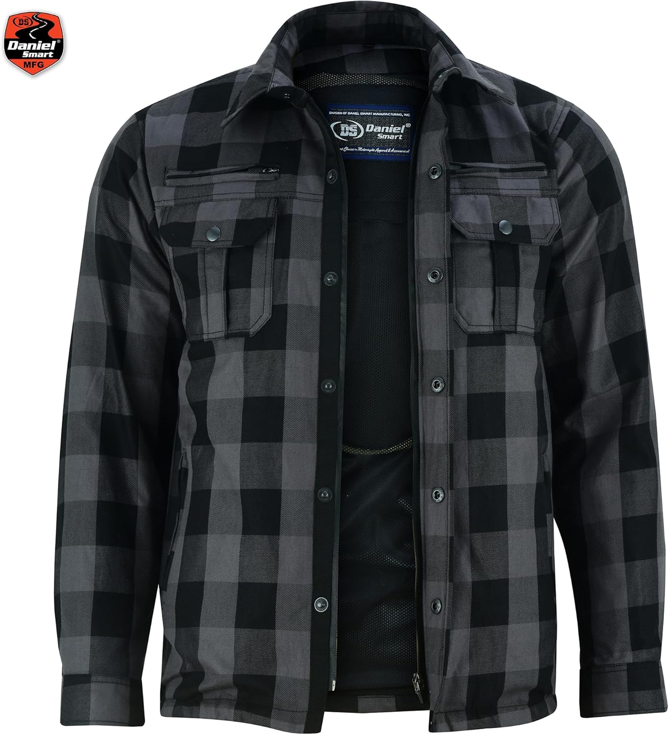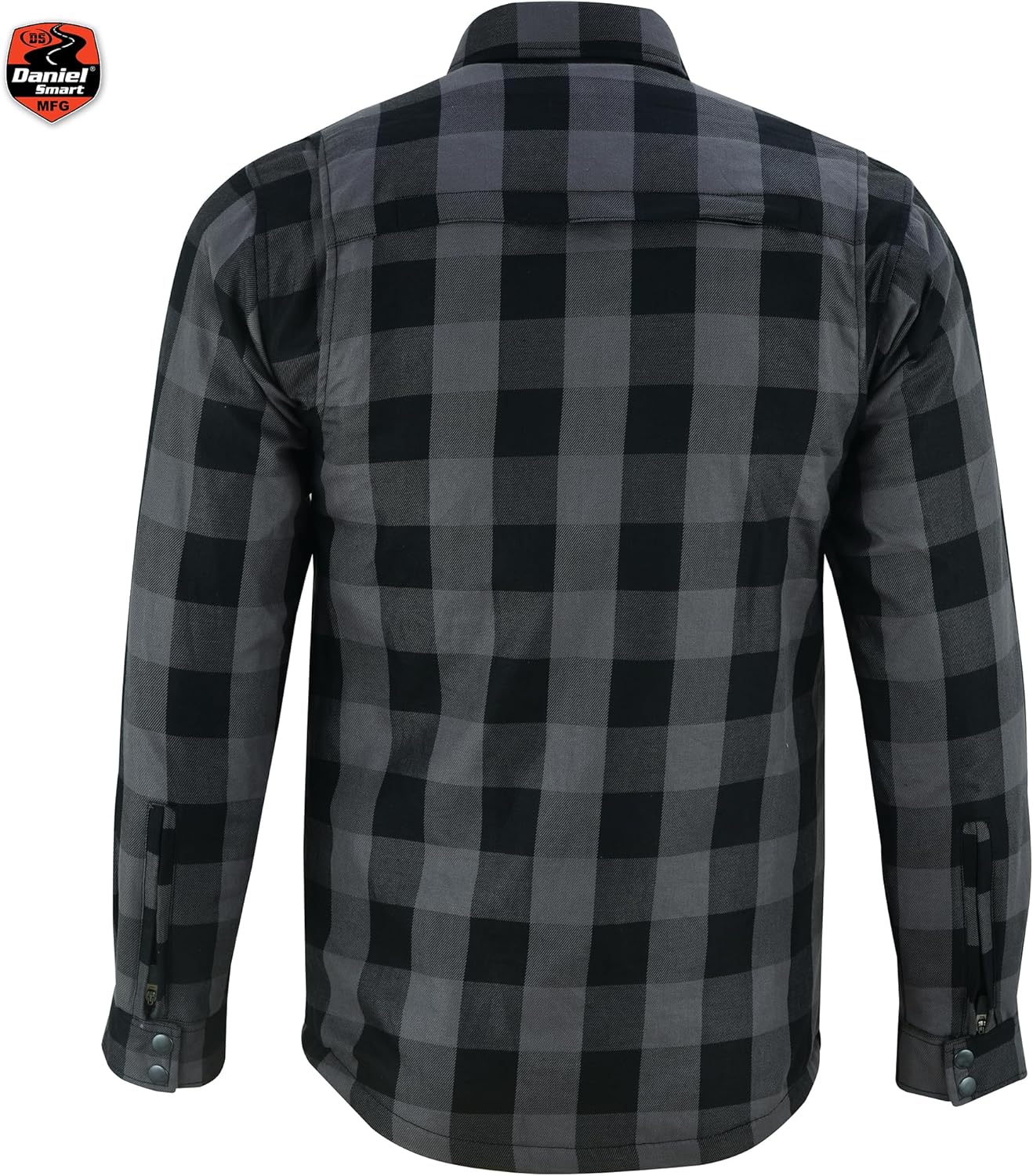 Daniel Smart Men’s Motorcycle Shirt All Season Sporty Armored Flannel Shirt – Water Resistant and Durable