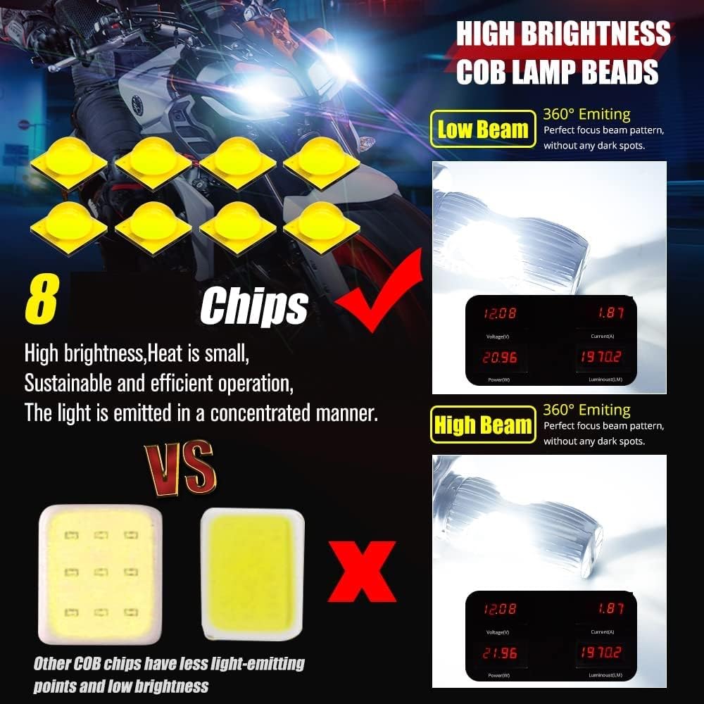 DC 12-85V H4 LED Motorcycle Headlight Bulb Hi/Lo 4000LM 9003 LED Bulb White 6000K 8xLED Chips LED Light for Yamaha,Honda,Kawasaki,ATV,Cars.(1 Pack).