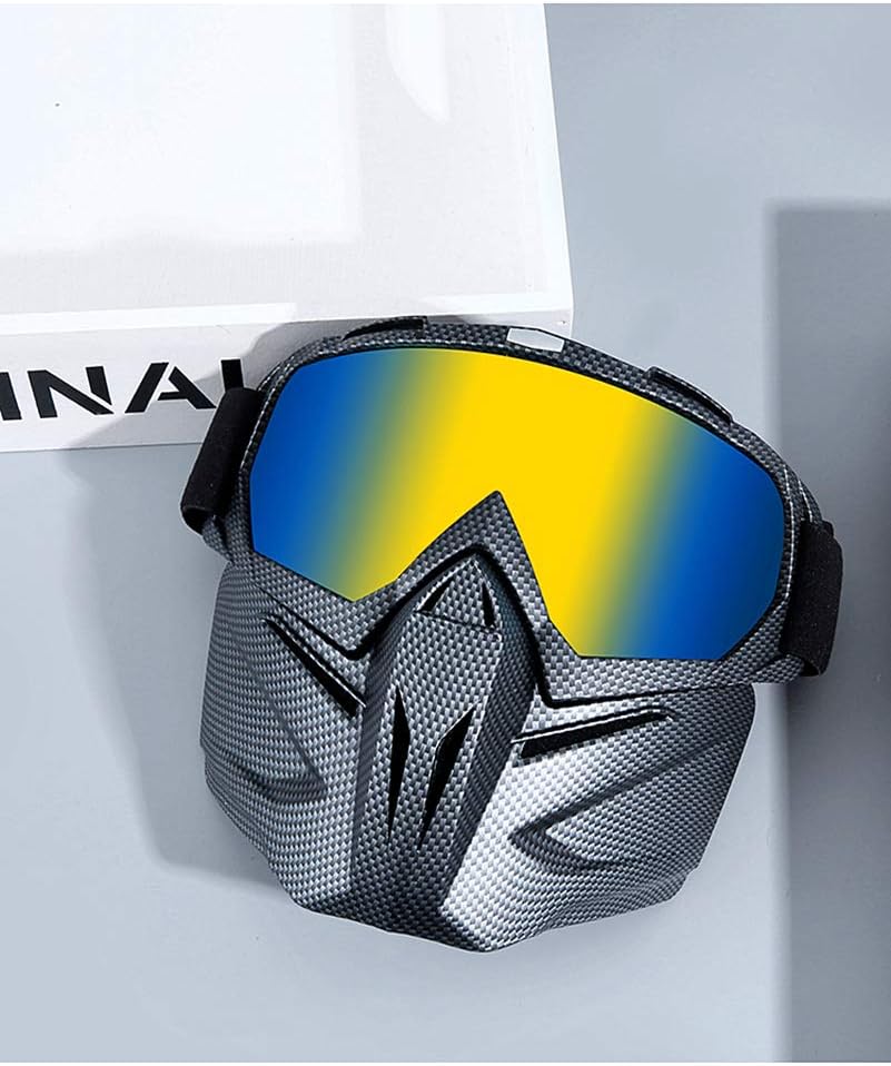 Helmet Goggles, Mask Detachable Goggles, Motorcycle Goggles Helmet Sunglasses,Skull Mask Gogggles, Snowmobike Sunglasses with Face Mask