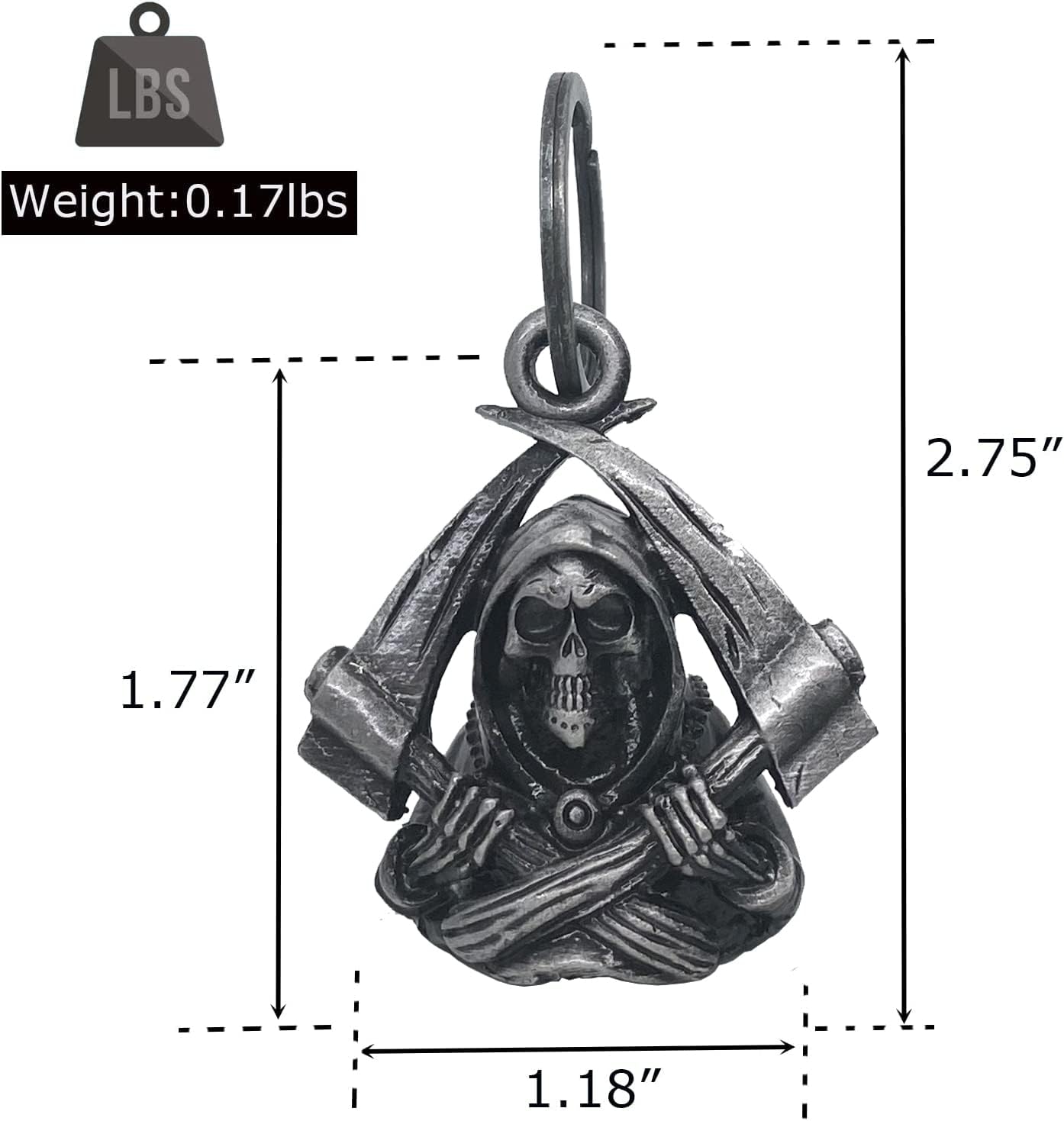 Large & Heavy:Each luck bell comes with 1 hanger+1 black gift bag+1 Legend of the Dream Apparel Bell story card,Measures: 2.75″ tall ring include, 1.18″bottom wide. and weight 0.17lbs,heavy motorcycle bell keeps more sturdy while riding.