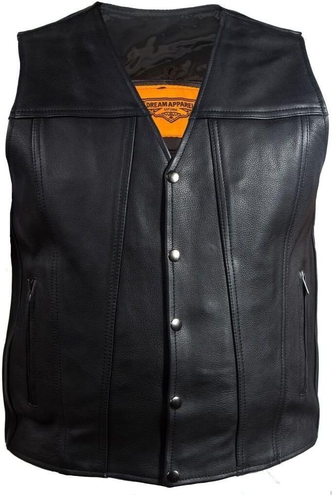 Dream Men’s Motorcycle Club Plain Leather Vest with 2 Gun Pockets & Single Panel Back