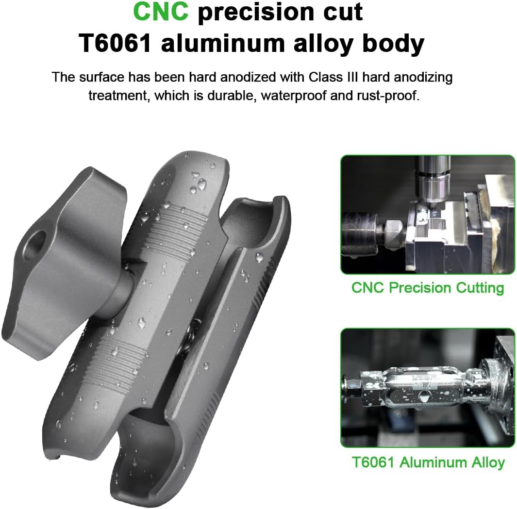 🤶【Long service life】High quality 20mm ball double socket arm combined with the chara cteristics of the product, using aluminum alloy, stainless steel, copper three materials, higher strength is not easy to damage, the surface of the III stage hard anodic oxidation treatment, smooth feel corrosion rust, has a very good durability and carrying capacity, is the motorcycle phone mount, bicycle cell phone mount, kayak cell phone holder, car GPS mount etc long-term use of a good choice.